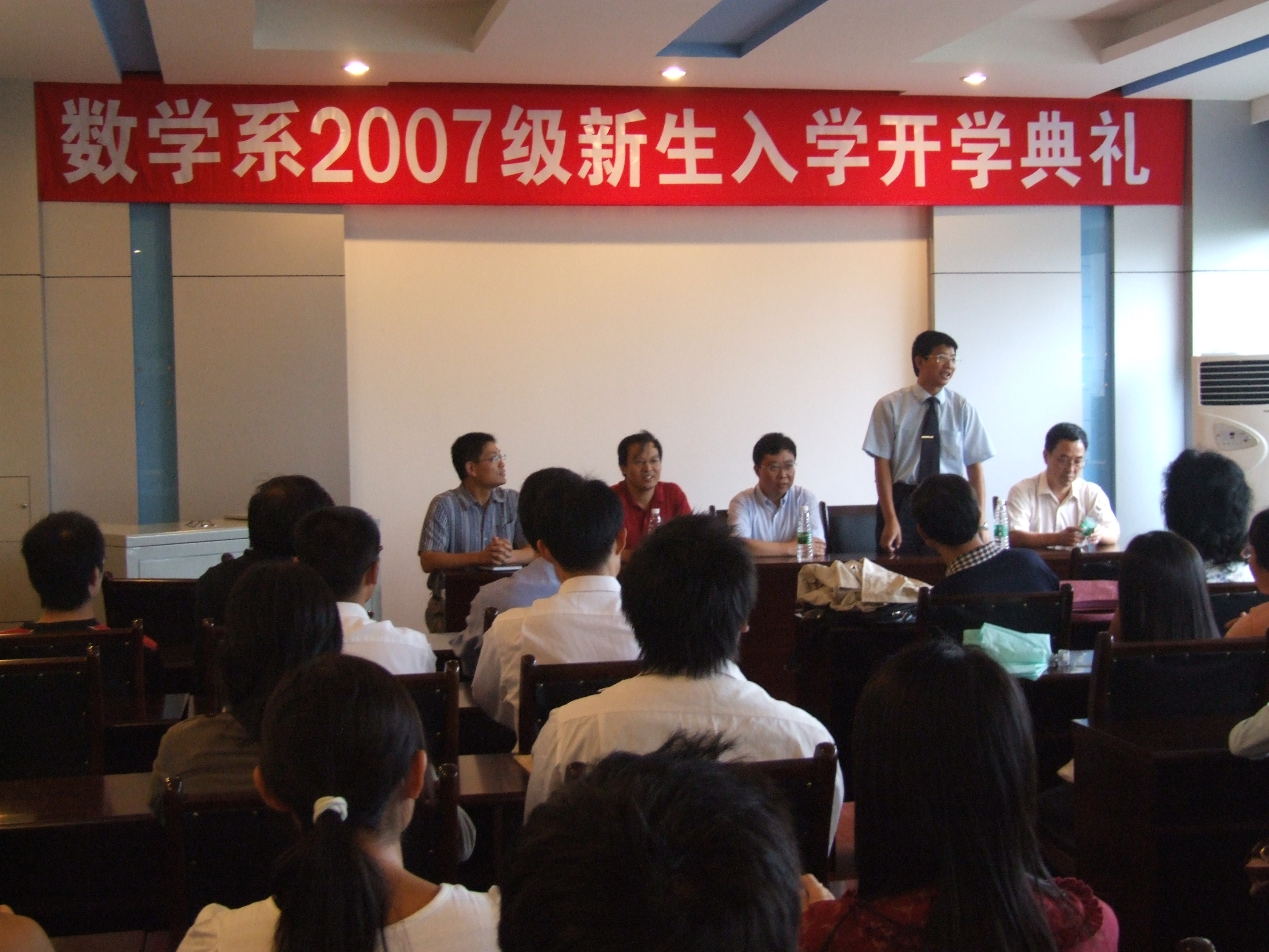 2007年9月7日下午2点30分,数学系2007级研究生入学典礼在vwin德赢AC米兰合作九里校区数学系会议室隆重举行,数学系主任何平老师、党总支书记陈尚云老师、副主任陈滋利老师、叶建军老师及党总支副书记李志辉老师,参加了本次新生入学典礼,与此同时还有本系研究生诸多导师列席参加。