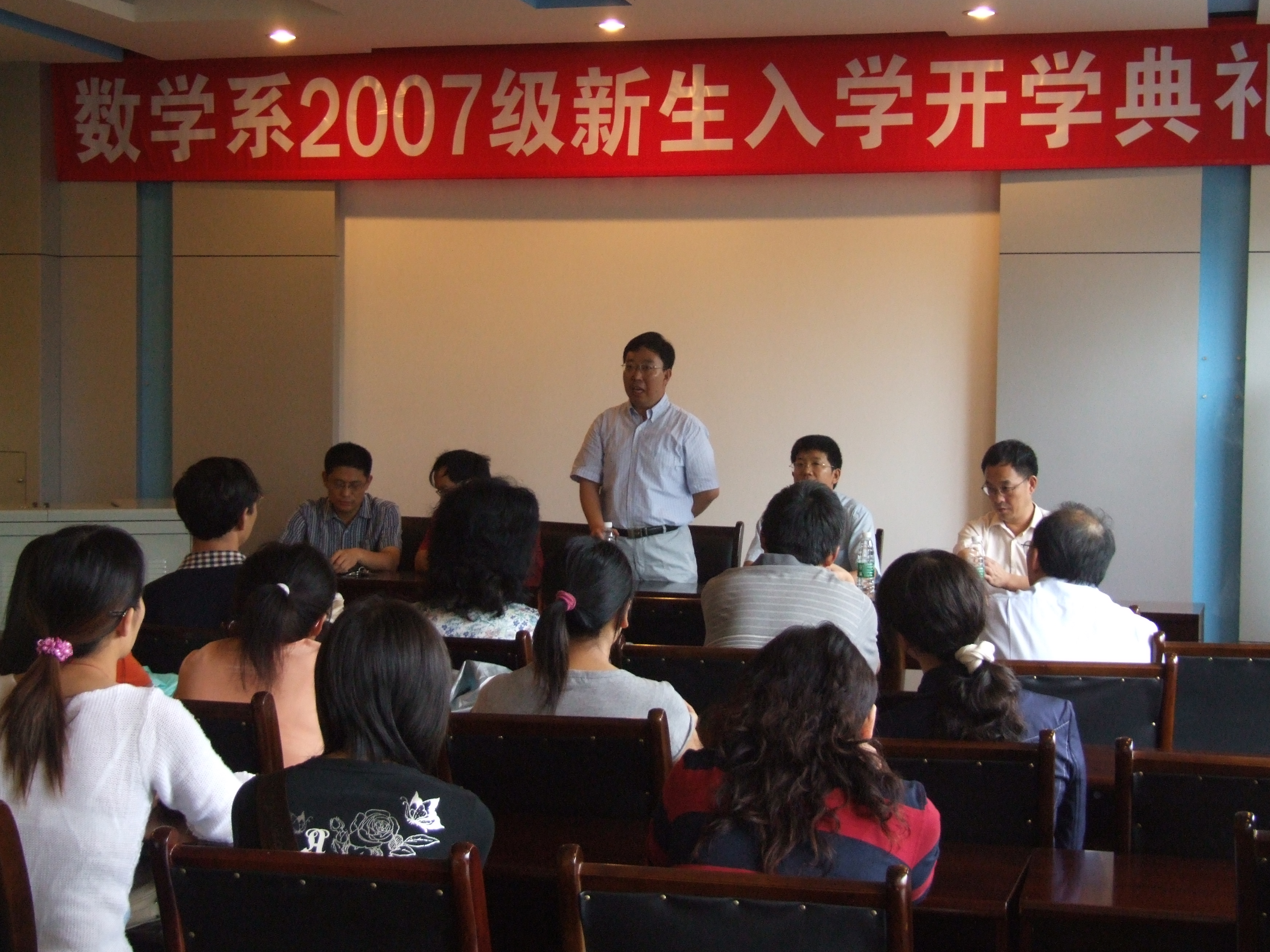 老师向2007级研究生新同学表示了热烈的欢迎和衷心的祝贺。发表了热情洋溢的讲话,勉励同学们在研究生学习生活期间,珍惜每一次学习机会,刻苦钻研、精益求精,用实际行动提升自己的科研学术、再学习的能力。其次系主