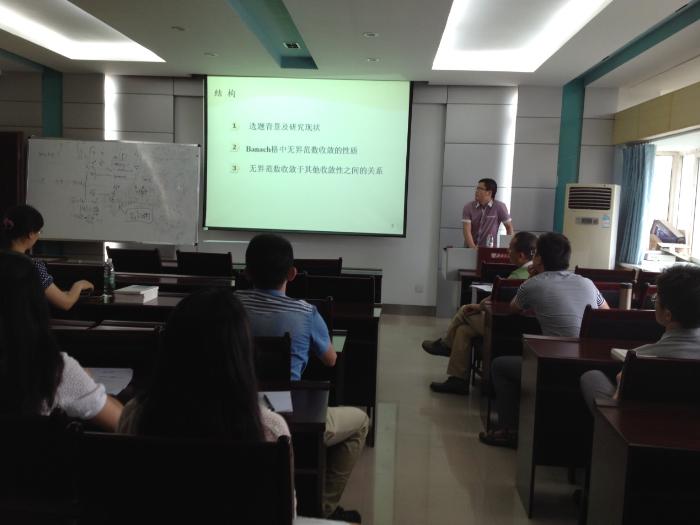 7月2日下午,vwin德赢ac米兰官网数学系2013级硕士研究生毕业论文中期检查工作在X2511学术会议室顺利完成。出席此次论文指导活动的有学院副院长陈滋利教授、副院长杨晗教授、院长助理范小明教授,数学系党支部书记冯颖老师,陈金喜副教授、樊明书副教授以及部分青年博士教师。