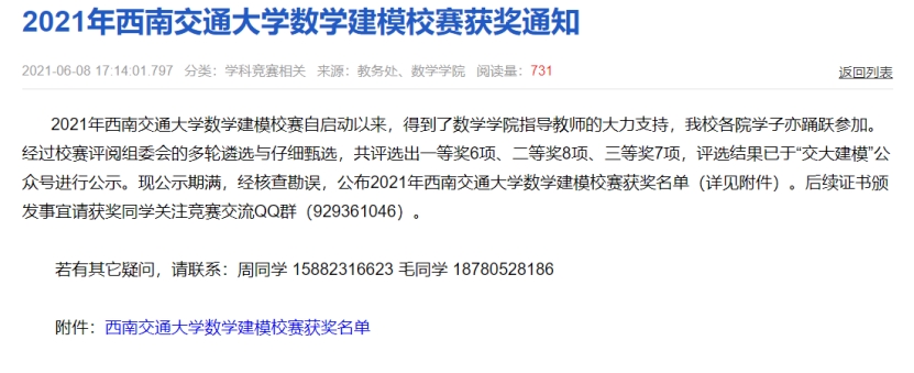 随后,数学建模协会在最短时间内完成了奖状的制作、校对、审核,并交由学校盖章,次日便发布了获奖证书的领取通知。