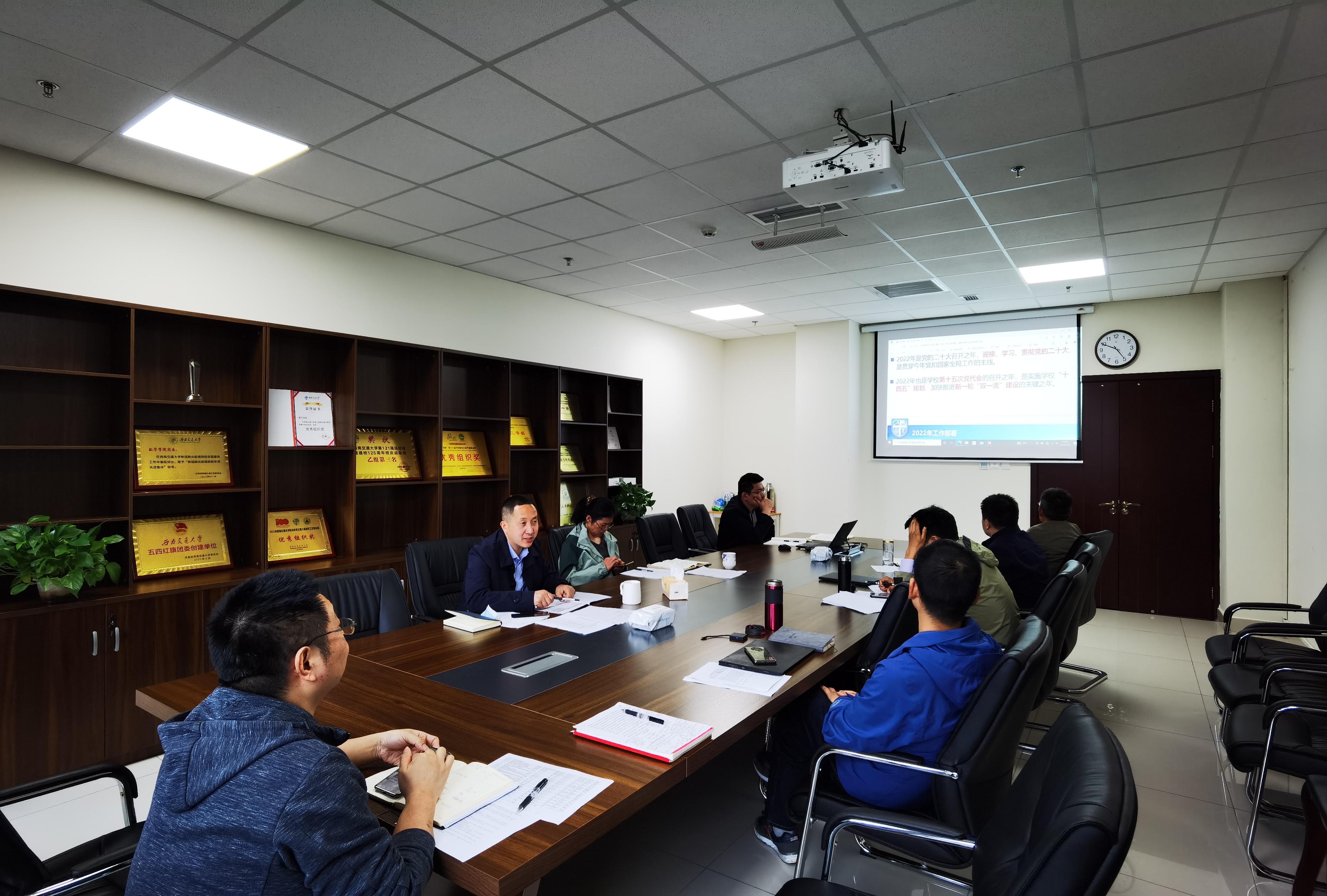 杨晗院长传达了学校2021-2022学年第二学期中层干部大会精神。大会由学校党委王顺洪书记主持。杨丹校长作了2021年学校工作总结,分析了当前学校发展面临的形势,部署了2022年学校重点工作。杨丹校长强调:2022年对于学校的发展来说是关键一年,全年工作可概括为“1个聚焦、1个加强、5个加快”,即聚焦迎接、学习、贯彻党的二十大;加强党的全面领导和党的建设;加快完善德智体美劳全面培养的育人体系,加快增强服务国家高水平科技自立自强能力,加快引育学校办学急需的一流人才队伍,加快打造高水平研究型大学的良好学科生态,加快提升学校现代化治理效能。以上各项工作归根结底都要贯穿1个主题:推动学校高质量发展。王顺洪书记指出:学校2022年大事多、要事多、难事多,面临更加复杂多变的校内外环境,并对学校今年工作做出六点强调:一是要进一步加强党对学校各项工作的全面领导,充分发挥党员的先锋模范作用和基层党支部的战斗堡垒作用;二是要坚持战略谋划,一届接着一届干,全校上下要咬定青山不放松,朝着既定目标不懈奋斗;三是要大胆改革创新、解放思想、敢于胜利、敢于冒尖,实现全校人尽其才和资源合理配置;四是要主动作为担当,遇事不推诿、不躲避,勇于承担责任;五是要团结拼搏奋斗,全校要在团结的基础上奋发有为,奋力拼搏,做好工作,做出成绩;六是要筑牢底线思维,扎实抓好校园安全稳定工作,更加积极、更加细致地落实好各项工作措施。