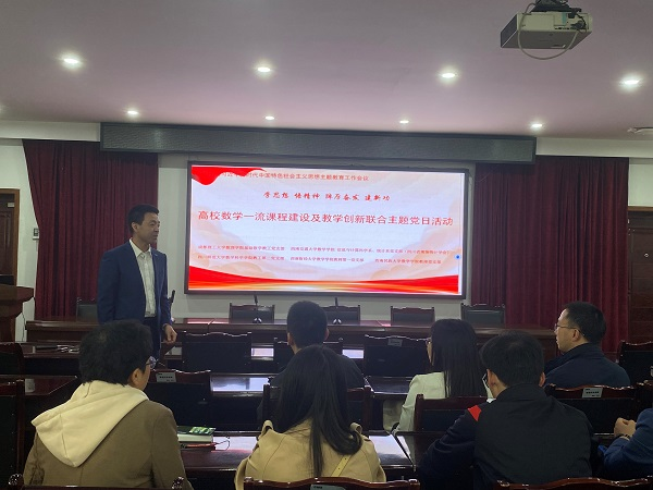 vwin德赢ac米兰官网教工信息与计算科学系党支部书记何星星老师和教工统计系党支部书记乔高秀老师分别分享了党建工作经验与专业建设情况等,也邀请各学校的老师们能够到交大来交流合作。