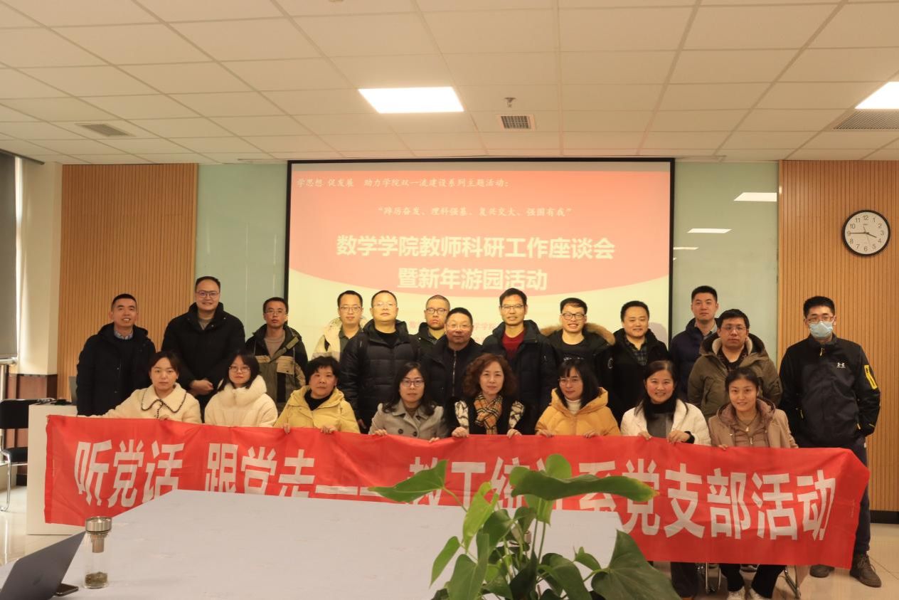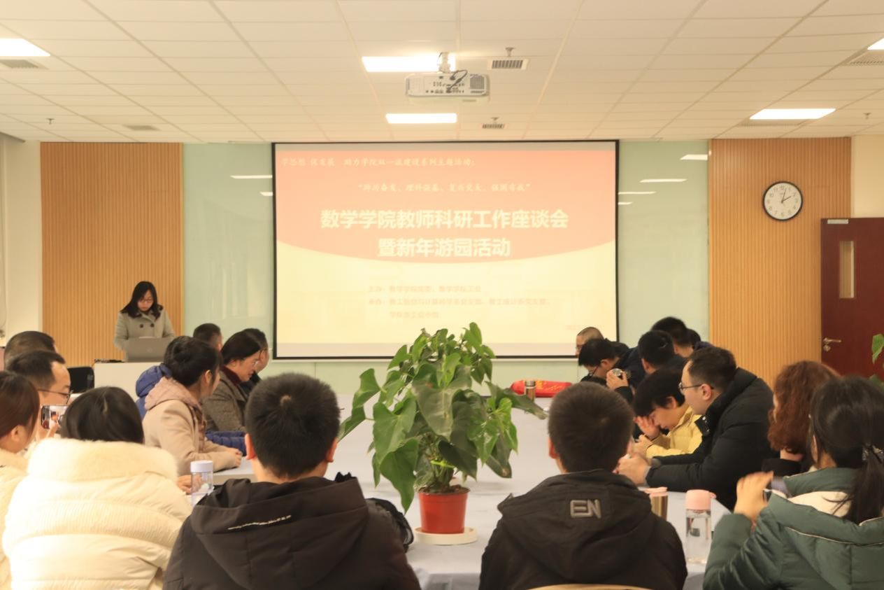 为深入贯彻落实党的二十大精神,贯彻学校第十五次党代会精神,12月21日下午2点,数学学院教师科研工作座谈会暨新年游园活动于X30456召开。本次活动由vwin德赢ac米兰官网党委、vwin德赢ac米兰官网工会主办,信息与计算科学系党支部、统计系党支部、学院各工会小组联合承办。vwin德赢ac米兰官网党委书记徐革、副院长王璐、院长助理杨洋、工会主席秦应兵、工会副主席郝虹、统计系党支部书记乔高秀、信息与计算科学系党支部书记何星星及青年教师代表参会。本次会议由统计系党支部书记乔高秀主持。