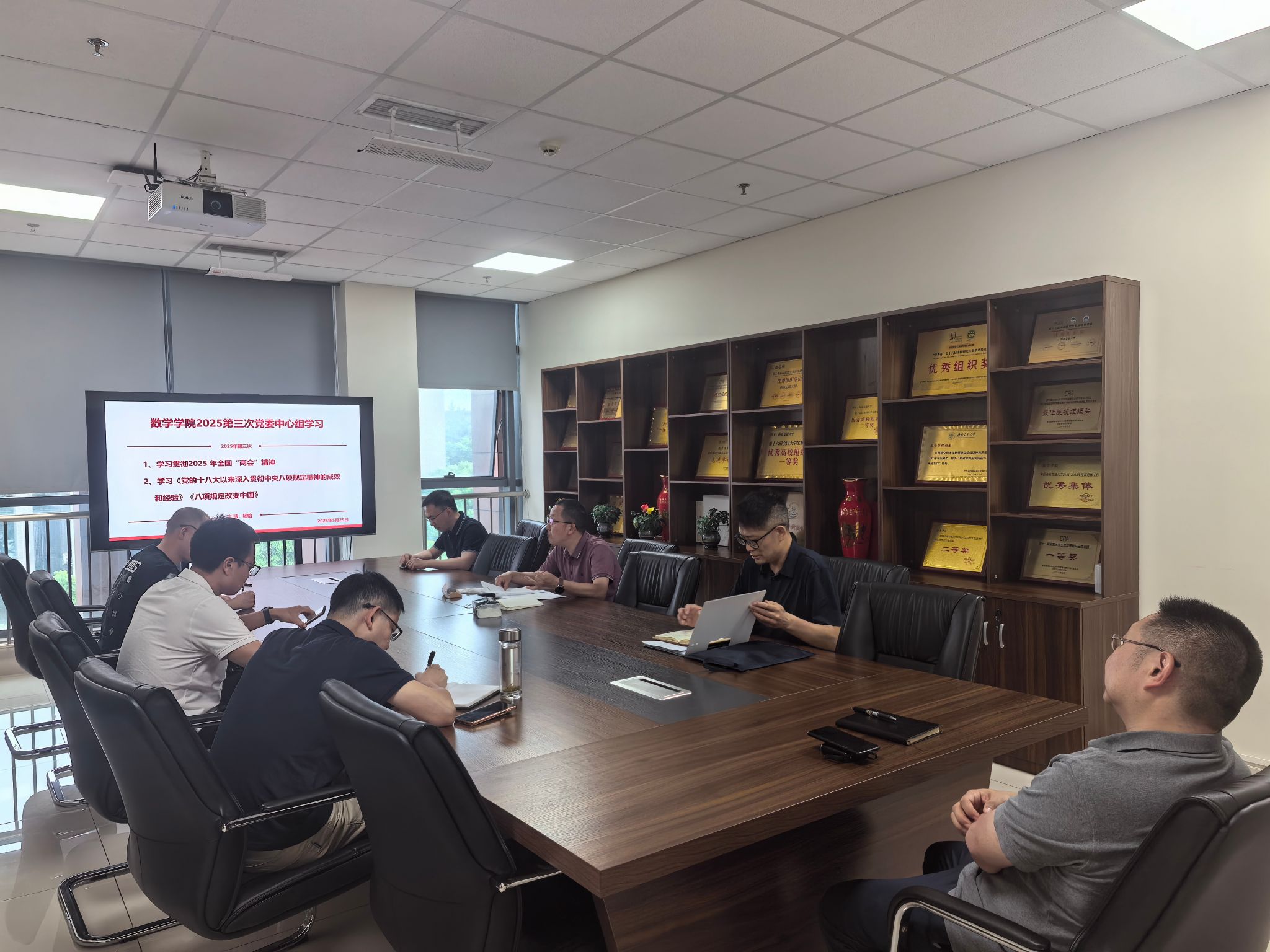 2025年5月29日下午,vwin德赢ac米兰官网2025年第三次党委中心组集体学习会议在犀浦校区X30429会议室召开。会议由学院院长兼党委副书记杨晗主持并领学,内容是深入学习贯彻2025全国两会精神,深入学习领会党的十八大以来深入贯彻中央八项规定精神取得的显著成效和积累的宝贵经验。学院党政领导班子成员、党委委员等参加了学习。参会人员还结合分管工作谈学习体会和思考。