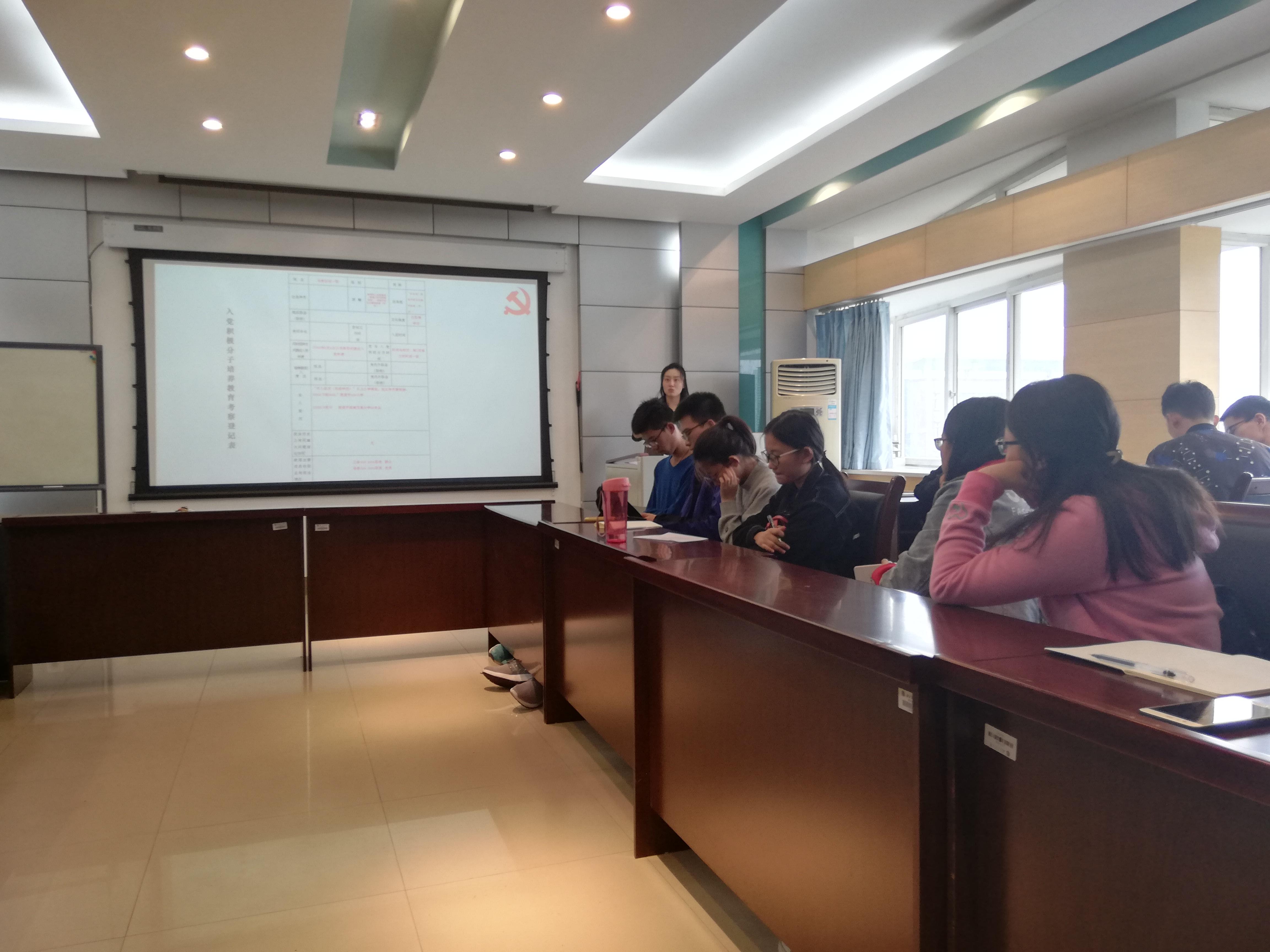 会议开始,卢怡帆老师介绍了从团员到正式党员的全过程,要求各班团支书在规定时间内收集好本班入党申请书,并就入党申请书、思想汇报等作细节强调。紧接着,卢怡帆老师强调了优秀团员推优表和入党积极分子教育考察登记表的填写注意事项并介绍了预备党员、积极分子思想汇报管理制度。
