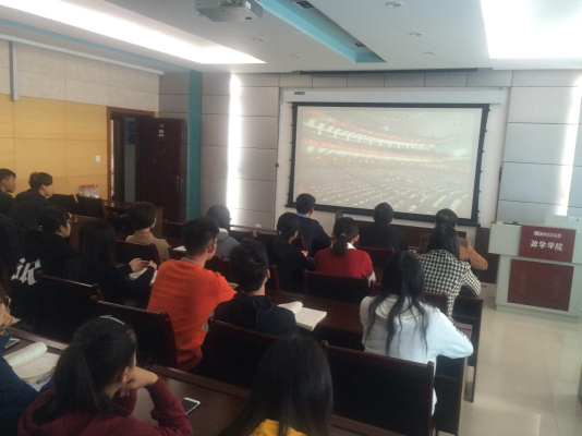 大会报告32440余字,历时210分钟,学院师生认真收看,详细记录,认真学习。会后,党委委员,学生工作组组长杨育鸿同志组织辅导员老师,学生党员代表进行座谈交流,学习报告要点,领会报告精神。