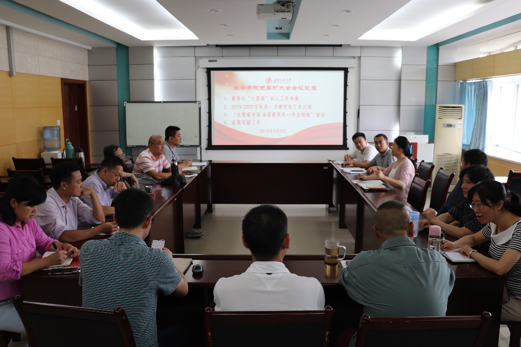 9月3日下午,vwin德赢ac米兰官网召开本学期第一次党委(扩大)会议,学校党委宣传部副部长李猛,学院党政领导班子,党委委员,纪委委员,教工党支部书记,系部主任等参加了会议,会议由党委书记徐革同志主持。