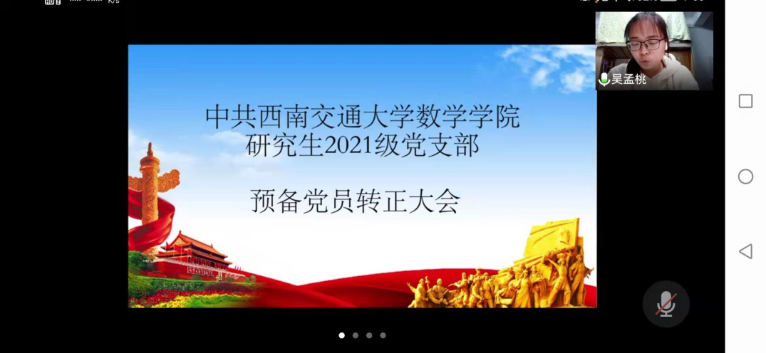 2021年11月19日,vwin德赢ac米兰官网2021级研究生院党支部于线上会议举行了吴孟桃、吴怡两位预备党员转正的党支部会议,本次会议由党支部书记王乐主持。