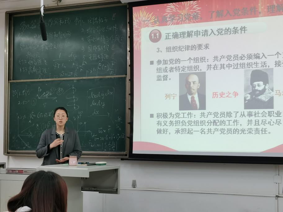 接下来,张老师介绍了党员发展的基本流程:申请入党、成为入党积极分子、成为发展对象考察培养,接收预备党员的程序与流程。张老师指出党的事业发展需要广大优秀青年,积极争取入党是大学生的正确选择。