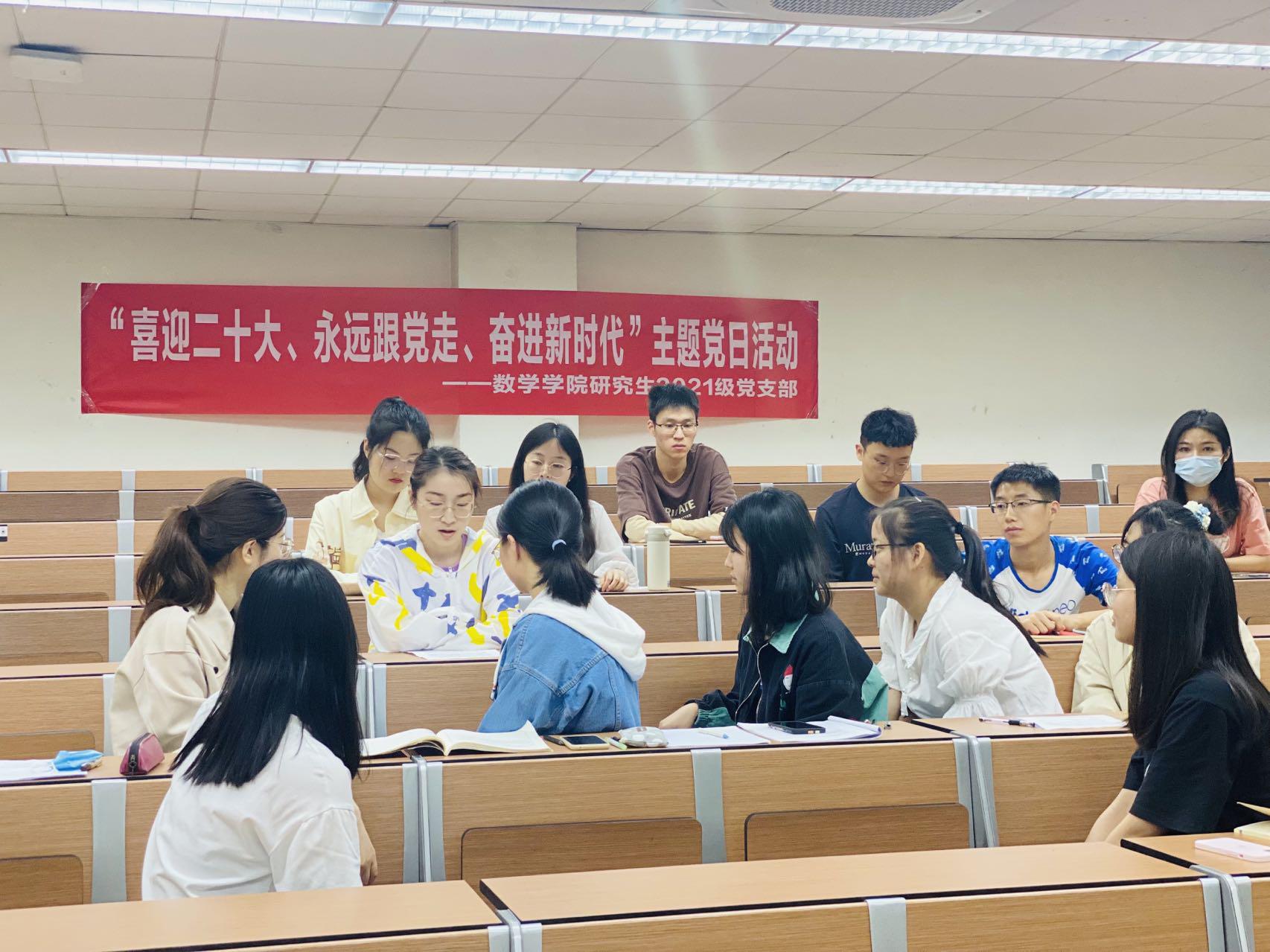 为进一步学习贯彻习近平总书记在中国人民大学考察时的重要讲话精神和在庆祝中国共产主义青年团成立100周年大会上的重要讲话精神,进一步统一思想、提高认识,vwin德赢ac米兰官网研究生2021级党支部于2022年5月16日晚7:30,在J4223开展“喜迎二十大、永远跟党走、奋进新时代”主题党日活动,活动邀请了负责学院研究生党建指导的邓思然老师现场指导,支部成员全员参与,党支部书记王乐主持。