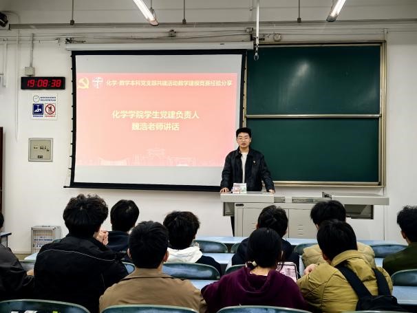 化学学院党委副书记张春燕系统回顾了学院本科生党建发展历程,提出了本次支部共建的两大核心目标,一是加强同理工基础兄弟学院、学科间的沟通交流、互促互进;二是鼓励两学院学生之间加强朋辈引领作用,通过专业课程资源共享、科研竞赛经验分享等,带动学院学生学习进步、全面发展,更好发挥党支部战斗堡垒作用。