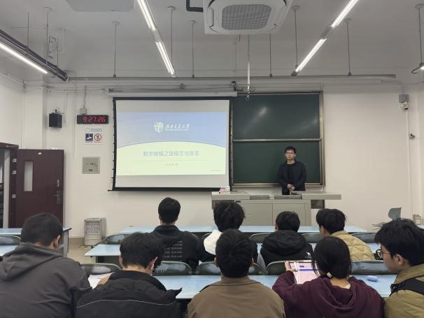 会中,来自vwin德赢ac米兰官网的三名优秀学生逐一开展经验分享互动。杨越溪同学以“知行合一·数模赋能”为题,详细介绍了参赛前的准备工作,着重指出掌握基础技能的重要性,并激励同学们勇于跳出“舒适区”,将竞赛视为提升自我的实践平台,做到以赛代练、实现以赛促学;栗子潮同学从专业视角出发,明晰了“建模手”与“算手”的关键职责,详细列举了必需的专业课程及核心模型,并通过剖析常见误区,为同学们提供了宝贵的实用技巧与避坑指南;王嘉泽同学聚焦于论文撰写技巧,从论文的框架搭建、书写规范等方面做了详细分享,并辅以生动的实际案例,深入浅出地进行了剖析与解读。