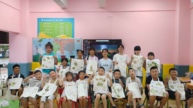 活动前七天,团队在通济镇桥楼党群服务中心开展社会实践活动。期间,团队结合专业特色开设了奇思妙数系列课程,数学独特的魅力潜藏其中。不仅如此,团队还开展了七彩假期专题课程,包括祖国旗帜在心中、美丽家园我心动等课程。其中非遗植物拓印引起小朋友们极大的热情,大家携手制作独一无二的植物拓印帆布包。