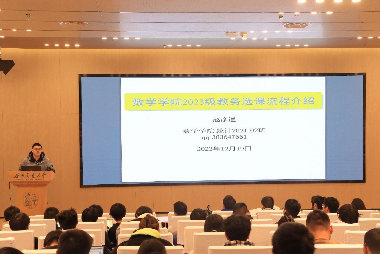 接下来,党员代表、优秀学长代表赵彦通同学为vwin德赢ac米兰官网2023级本科生作选课流程介绍,针对新生提出的选课方面的问题做出详细的介绍,并进行演示讲解。