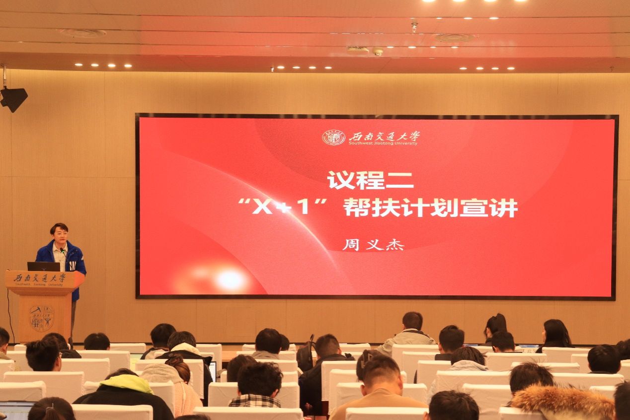 活动伊始,学生会指导老师周义杰作“X+1”帮扶计划宣讲。周老师讲述了帮扶计划设立的初衷和目的。他指出要发挥优秀学长的带头模范作用,营造学风至上、治学严谨的交大数学学术氛围,探索更多可能。随后,周老师介绍了学院为此次帮扶计划做出的支持工作,并鼓励学生要重视学业发展,主动与学长学姐交流,行稳致远,久久为功,学院将以结果、过程、评价三个目标导向来考核帮扶工作。