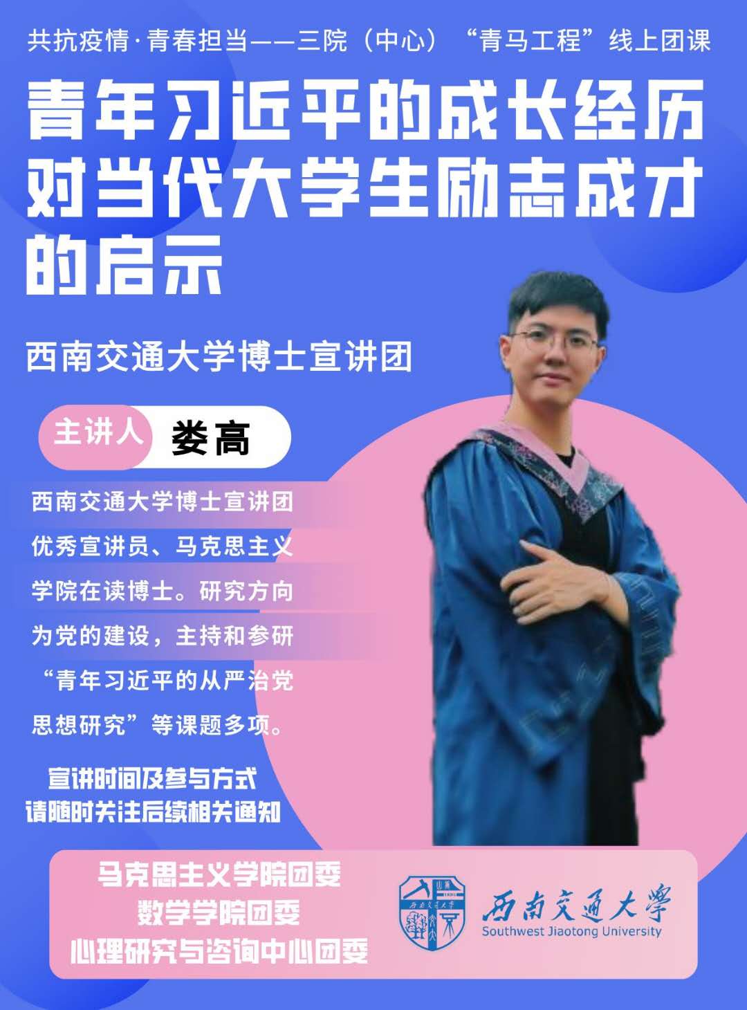 6、完成所有课程培训后,需提交不少于500字心得体会,由各支部、组织于最后一场培训结束后5天内汇总后发至团委邮箱(sxtw@swjtu.edu.cn)。