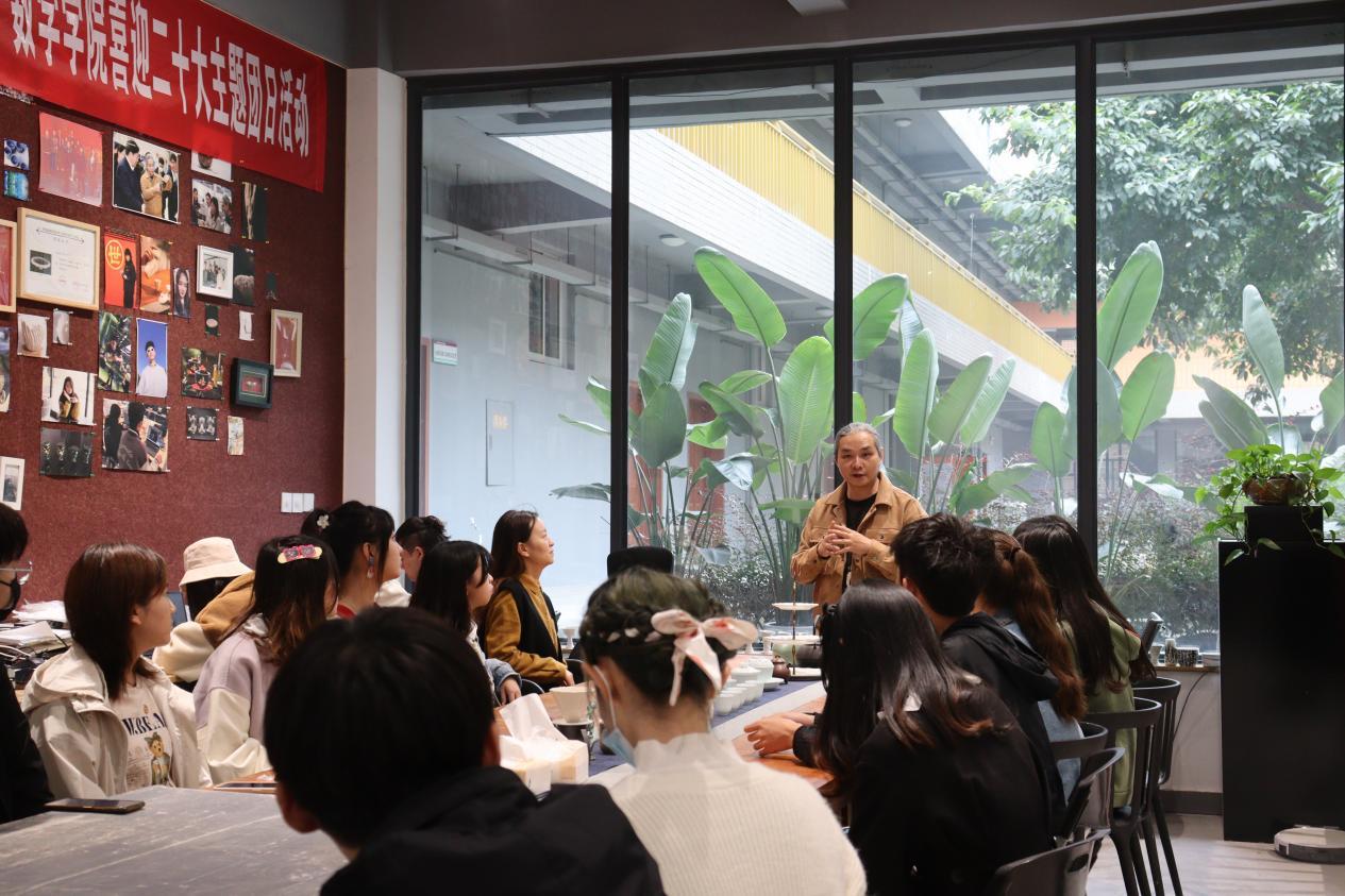 随后,陶瓷艺术与制作工艺实验室主任王永亮老师以风趣幽默地方式从实验室基本情况、陶瓷艺术的发展、陶瓷制作的工艺流程等方面向大家进行了耐心地讲解,特别展示了实验室打造的熊猫飘逸杯、变脸盖碗以及vwin德赢125周年文创作品的设计理念及创作来源。讲解完毕后,王老师为大家提供了关于陶绘的工具材料,在讲解完绘画流程和操作的注意事项之后。师生们开启了一次围绕“爱国、爱党、爱校”为主题的陶画创作。
