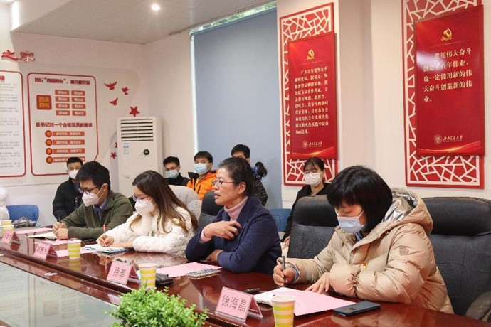 3名研究生代表结合视频介绍了新时代有为青年的红色事迹,并结合学习生活畅谈如何做好一名新时代优秀党员。郭小龙向大家介绍了“从陪练到冠军”的武大靖,明白拼搏奋斗自强的意义;赵云龙则谈到他从清华听障博士江梦南的故事中汲取到力量;陈一琳从90后技工“先锋”——裴先峰的事迹中领悟到了“工匠精神”的一丝不苟。