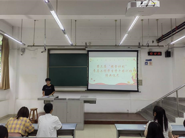 会议第二项,优秀学员颁奖。本期青马工程学生骨干培训班评选出李庶祎、潘家平等八名优秀学员,以表彰他们在本学期课程学习中积极参与各项活动,在学习中起到引领作用。