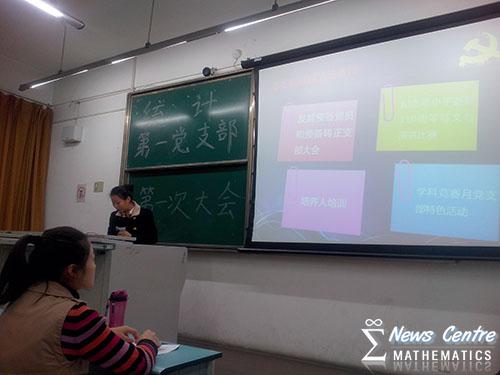 11月2日下午6点整,vwin德赢ac米兰官网统计本科生第一党支部第一次大会正式开始,指导老师为团委副书记兼11级辅导员张娟老师,参加会议的是第一党支部的党员和入党积极分子。