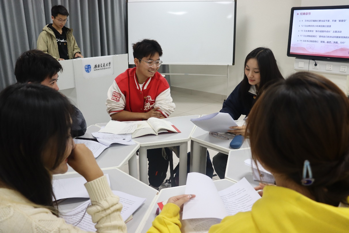 在阅读结束后,各小组进行分享交流。同学们结合书中印象深刻的故事、重要理论观点和个人感悟,畅谈新时代青年的责任与担当。
