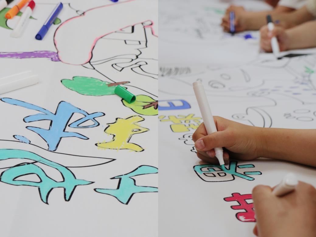 爱护环境,笔绘地球。志愿者们积极传播环保理念,以“地球一小时”为切入点,倡导小朋友们开展环保“一小时”行动,用手中的画笔描绘心中的地球。蓝天白云在笔下舒展,青山绿水由笔尖勾勒,孩子们热情高涨,积极投入创作,一笔一画都展现出对绿色地球的热爱,纸卷的画面上也呈现出一幅人与自然和谐共处的美好景象。