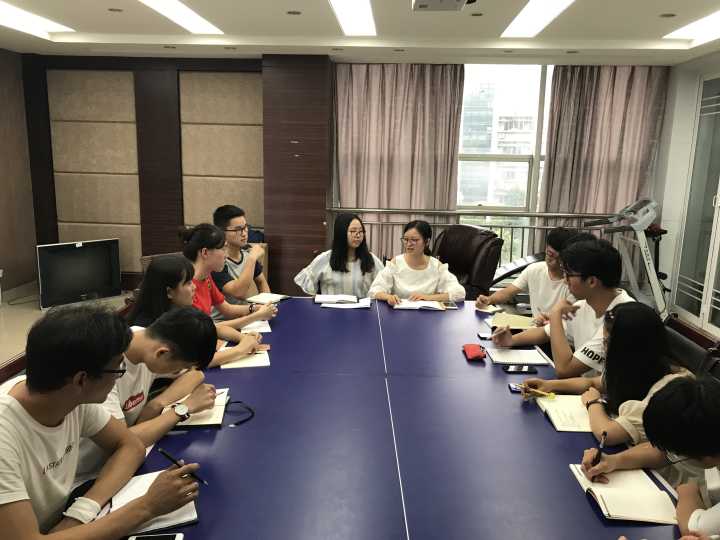 首先,由团委书记邓思然老师向大家说明迎新工作的注意事项。邓老师要求学生干部应注意迎新时的仪容仪表与语言用词;要求学生干部需加强应急意识并及时将遇到的不可抗因素汇报给指导老师;要求各部门在假期就需做好迎新准备工作。在说明迎新事项的同时,邓思然老师也提到经典阅读的重要性,告知同学们团委在下学期将每月开展团委交流会,大家相互分享学习心得。并且提醒同学们除了工作,大家也应注意团队内部活动的创新来提升团队凝聚力。