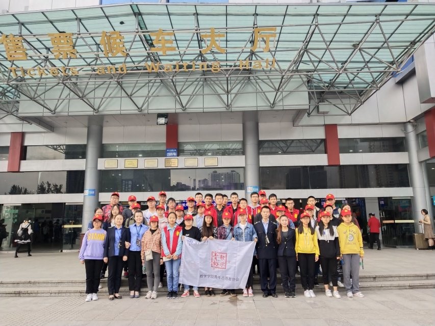到达客运站后,首先有负责携带衣服的同学给大家分发印有“数学青协”字样的红马甲和小红帽,大家穿戴整齐,以增强辨识度,方便大家在工作中互相联络交流。随后由客运站工作人员给大家一一分配工作,志愿者们被分为三组,第一组负责打扫卫生,第二组负责帮助乘客检票,第三组站岗指路。
