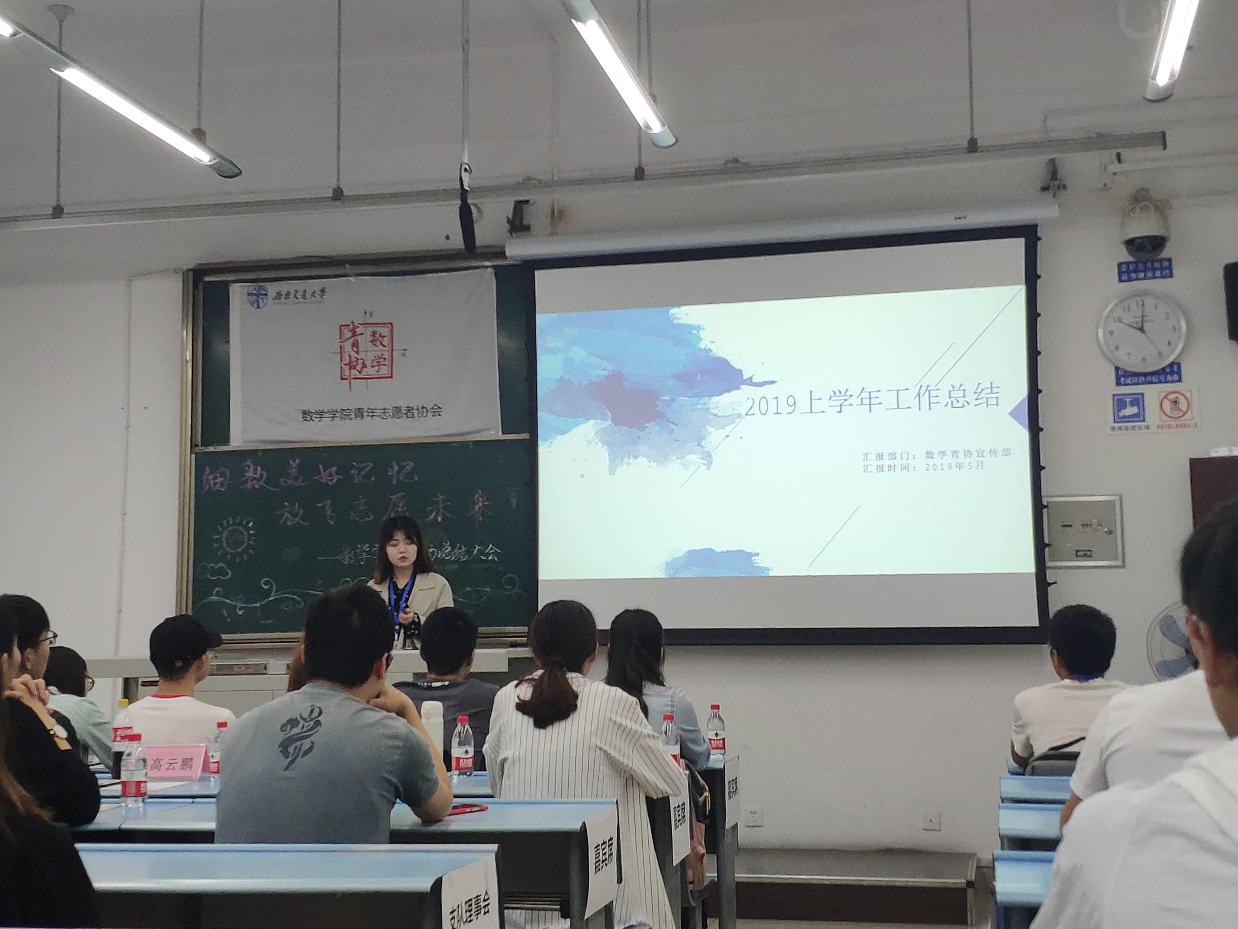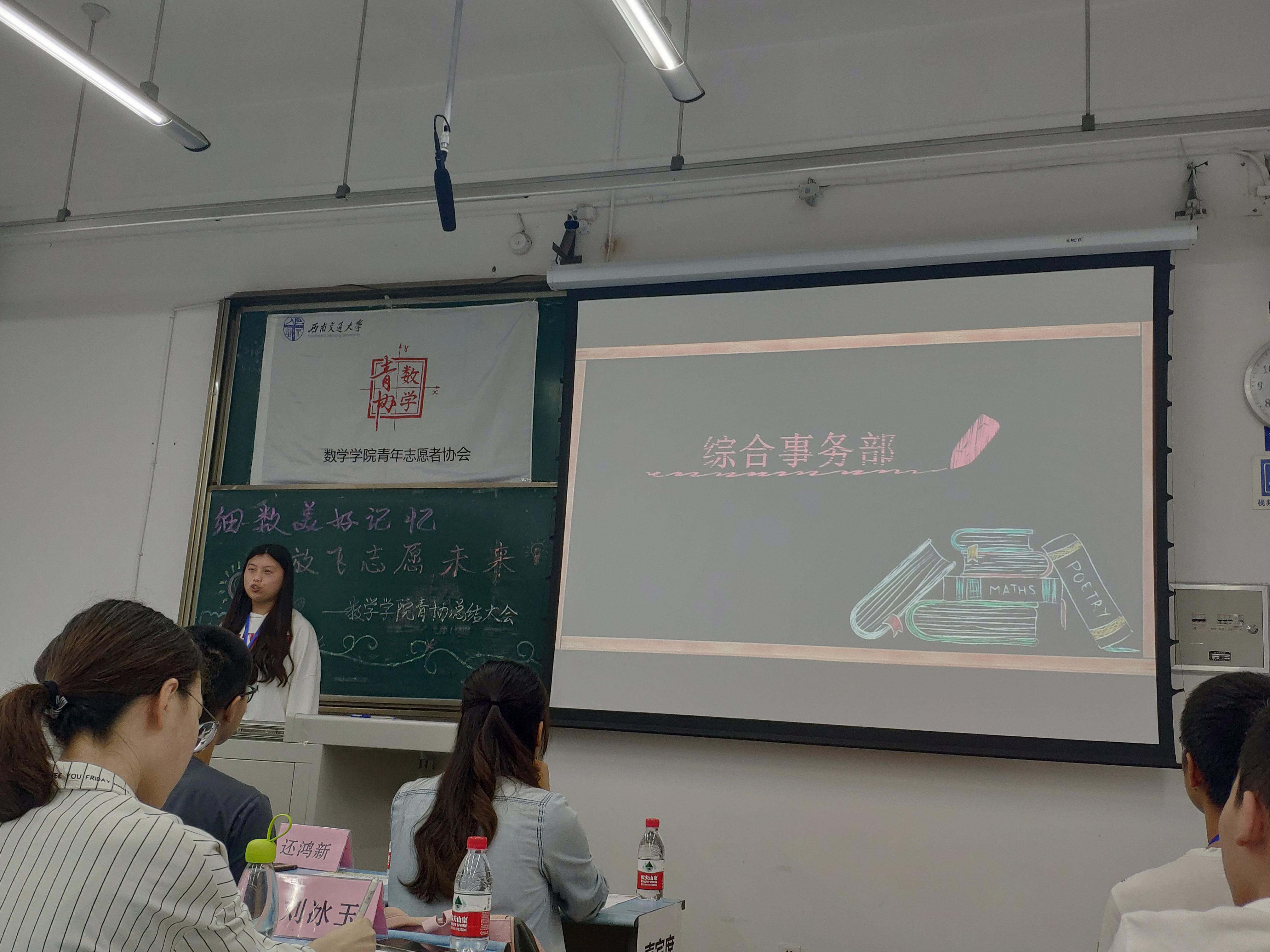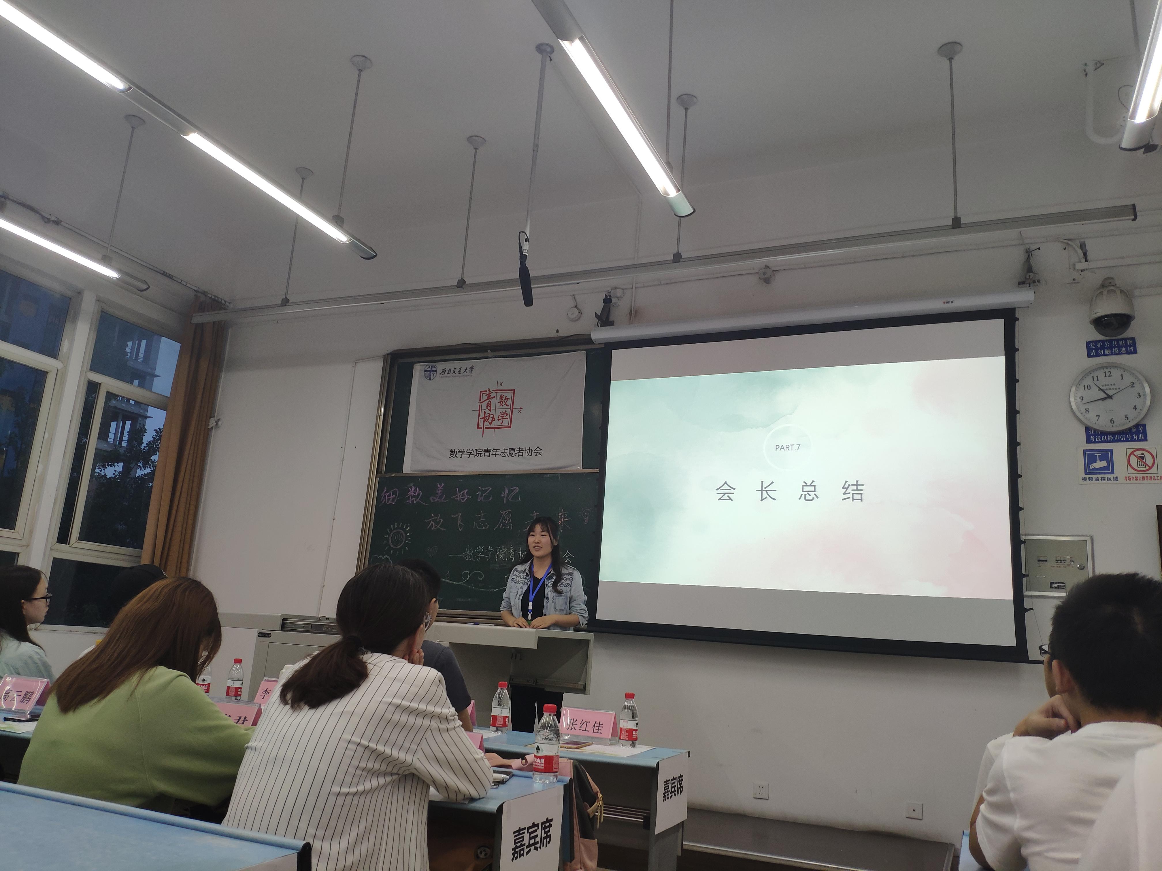 大会第七项,会长总结。张红佳会长对青协这一学期来的各项活动进行全面而客观的分析总结,指出不足并提出改进空间,并对优秀活动的举办表示欣慰和鼓励,同时也将自己对青协的不舍与留念化作对青协的鼓励与期许,希望数学青协这个大家庭能够越办越好,数学青协永远是每一个可爱志愿者的家。