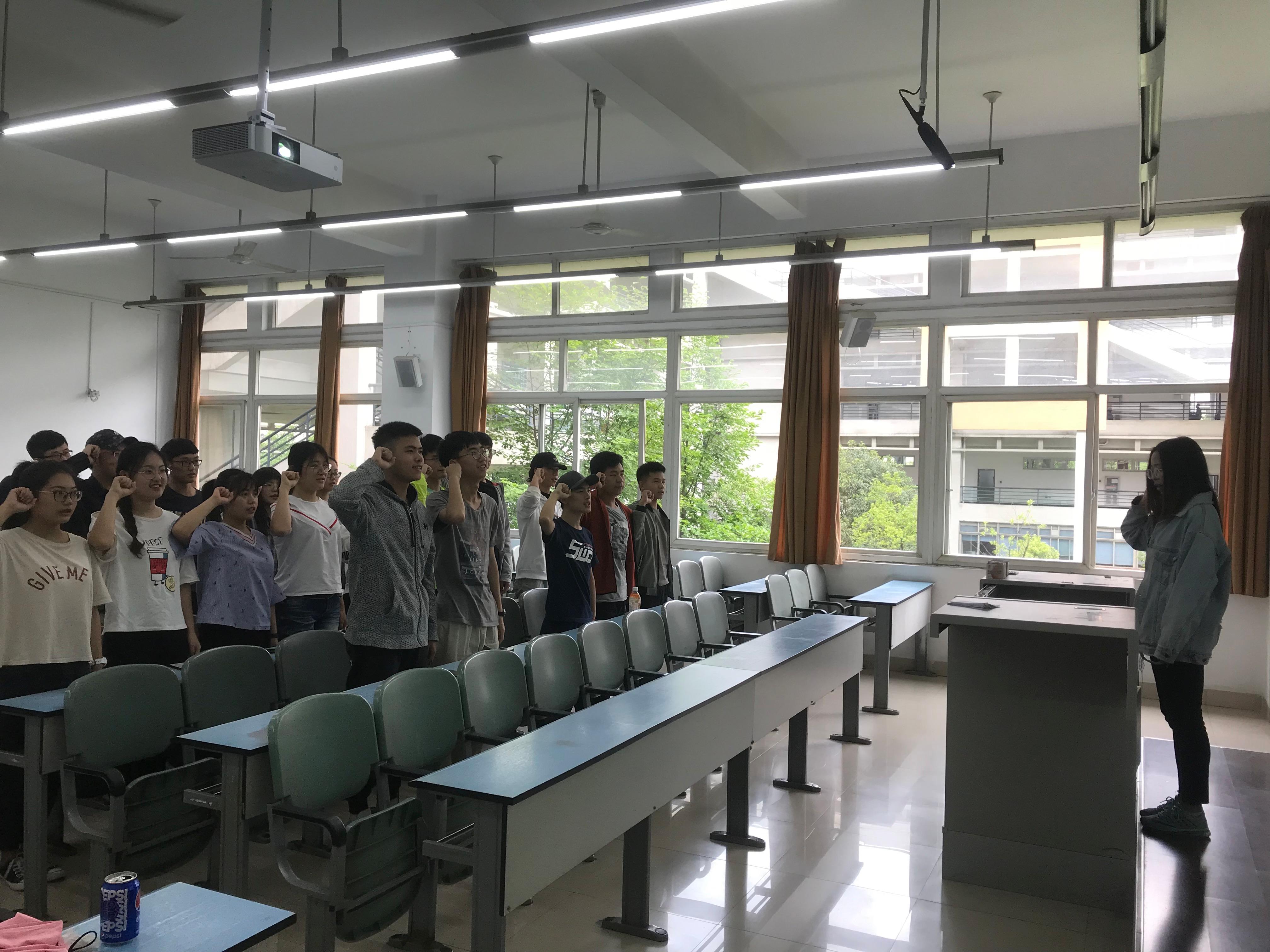在团支书的带领下,全体团员在团旗下高举右拳,重温入团誓词,共唱团歌,每个团员都应将入团誓词铭记于心并转化为行,不忘初心,砥砺前行。