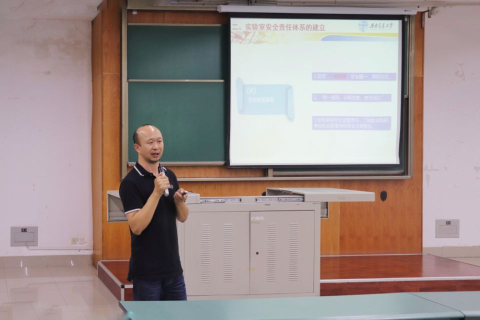 之后,潘导师从实验室安全基本要求以及实验室安全责任体系的建立出发,介绍了实验室的安全问题的重要性。他着重介绍了严谨治学和严格要求的双严传统,以及一岗四责,安全第一,预防为主,统一领导等相关内容。