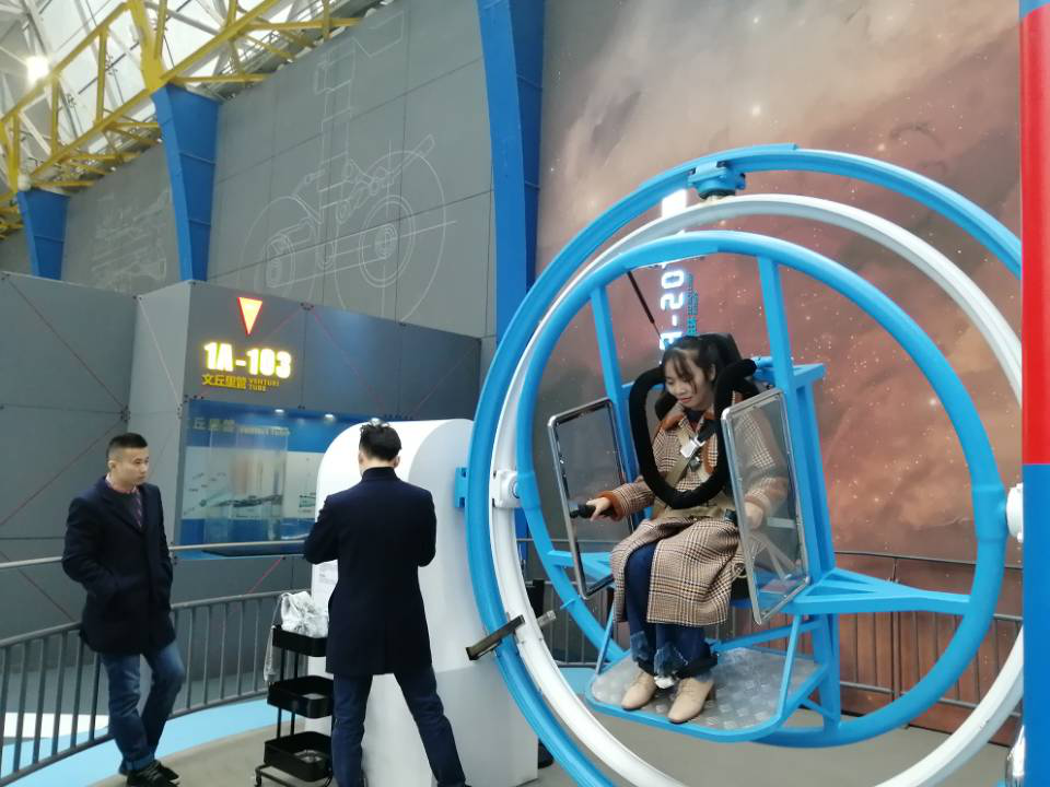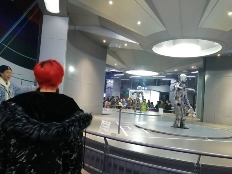 二楼展厅的主题是——三寻——寻知、寻智、寻迹。包括声光电厅、数学力学厅、虚拟厅、机械厅、机器人大世界6个主题展厅。在这里同学们体验了趣味数学、经典物理、神奇的力、美妙的光、巧妙的机械装置等基础科学类展项,还利用了VR技术,体会了虚拟环境的沉浸感、交互感和体验感。在机器人展厅,同学们见识了各式各样身怀绝技的机器人。在与机器人一起热舞、比赛投篮、下围棋的欢乐中,同学们体会到了科技的美妙与神奇。