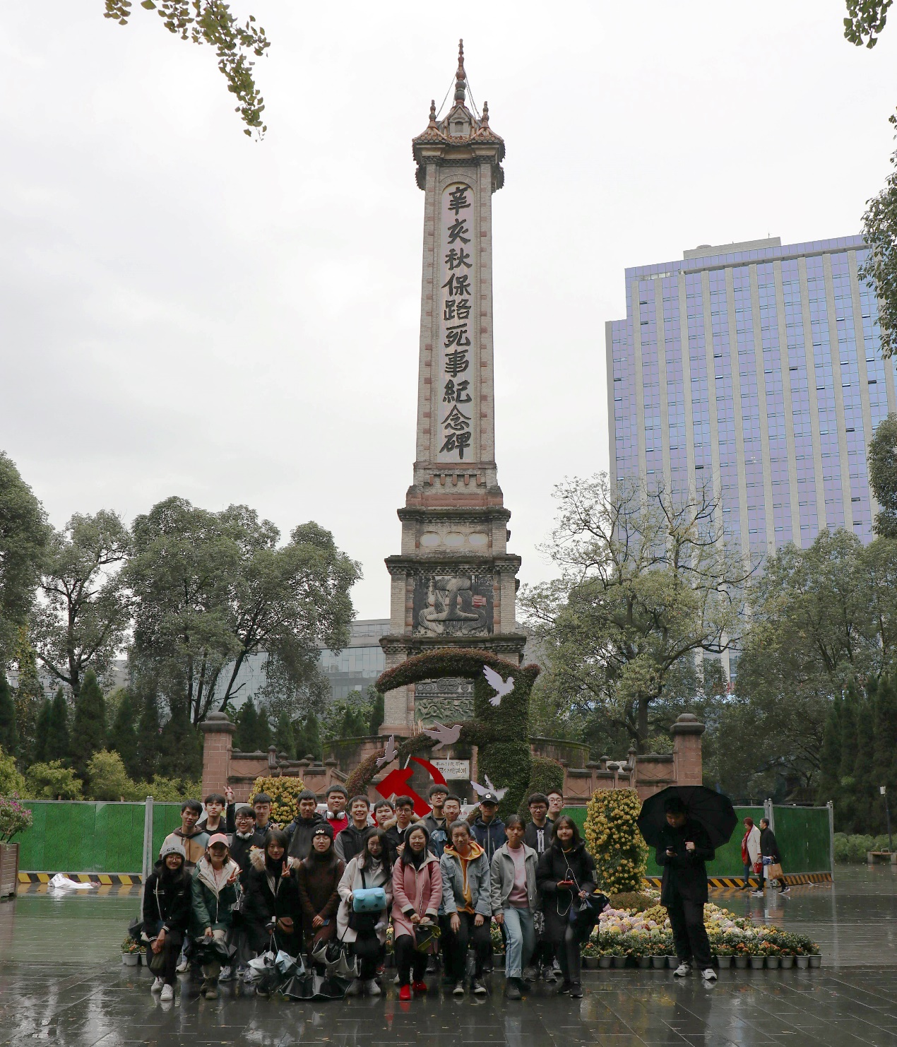 活动的最后,同学们参观了傲然屹立的辛亥秋保路死事纪念碑,缅怀先烈,铭记历史,并在纪念碑前合影留念。