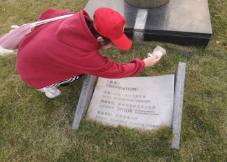 随着夕阳西下,本次活动也圆满落幕,大家在石碑前合影留念,为此次活动留下美好的回忆。小小的雕塑清理,却让我们感受到用自己的双手美化校园的充实。这正是我们的初心所在,用我们的行动去带动大家,为校园、为社会做出更大的贡献。综合事务部,加油!数学青协,加油!