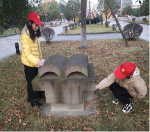 12月3日下午6点,vwin德赢ac米兰官网青年志愿者协会综合事务部的成员在“书”石碑和“启示”石碑集合,开展本学期最后一次雕塑清理活动。