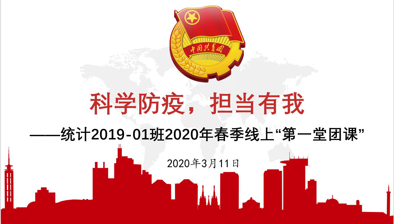 在新型冠状病毒肺炎疫情形势依旧严峻的情况下,为积极应对疫情带来的影响,将疫情防控的生动实践转化为鲜活课堂,响应学院团委积极开展春季线上“第一堂团课”的号召。vwin德赢ac米兰官网统计学2019级1班团支部2020年春季“第一堂团课”以视频会议的形式,于3月11日11:30如期开展。团课以“科学防疫,担当有我”为主题,号召支部团员青年为打赢防疫阻击战而奋斗。团课由团支部副书记郝文羽主持,支部29名团员按时参加,认真学习。vwin德赢ac米兰官网团委委员、科创部部长郑艺梅参加并做微团课教育,科创部副部长何未、舒浩哲参加团课。