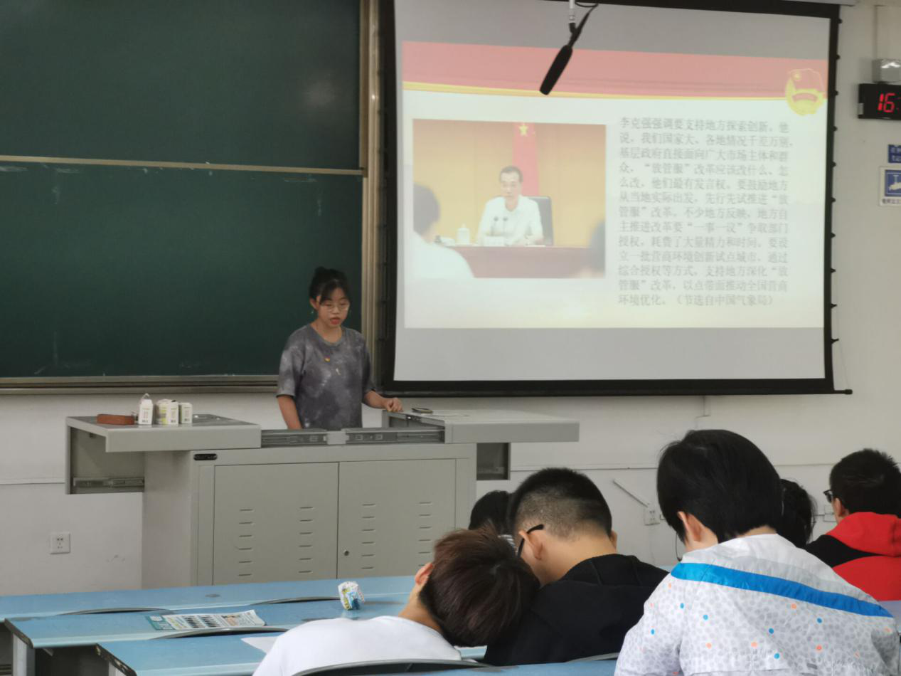 接着,由统计一班团支部书记赵艺琳带领大家学习改革开放史。她对改革开放历程、改革开放的本质以及如何落实改革开放做了细致讲解,并分享了她关于改革开放史的学习心得。她提出,学习改革开放史是各位团员的必修课,也是必须要掌握的一种能力。