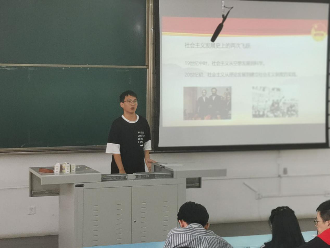 接着,由统计一班班长戴云龙带领大家学习社会主义发展史。他关于社会主义发展史上的两次飞跃、社会主义的产生、以及社会主义的曲折发展做出了深入讲解。