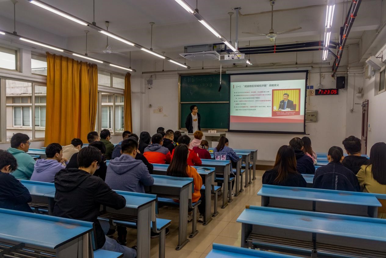 为促进团员青年更加全面深入地了解“成渝地区双城经济圈”,感受时代变局中的青年机遇,应用数学2018级2班团支部于2020年10月24日下午15:30于X2532开展了2020年秋季学期“开学第一堂团课”。此次团课以“把握时代新机遇,唱好成渝双城记”为主题,由班长安禾嘉主持,数学二班所有团员全员到齐。特别地,邀请了团干部联系青年1+100对接人团委组织部部长林玉参加团课。