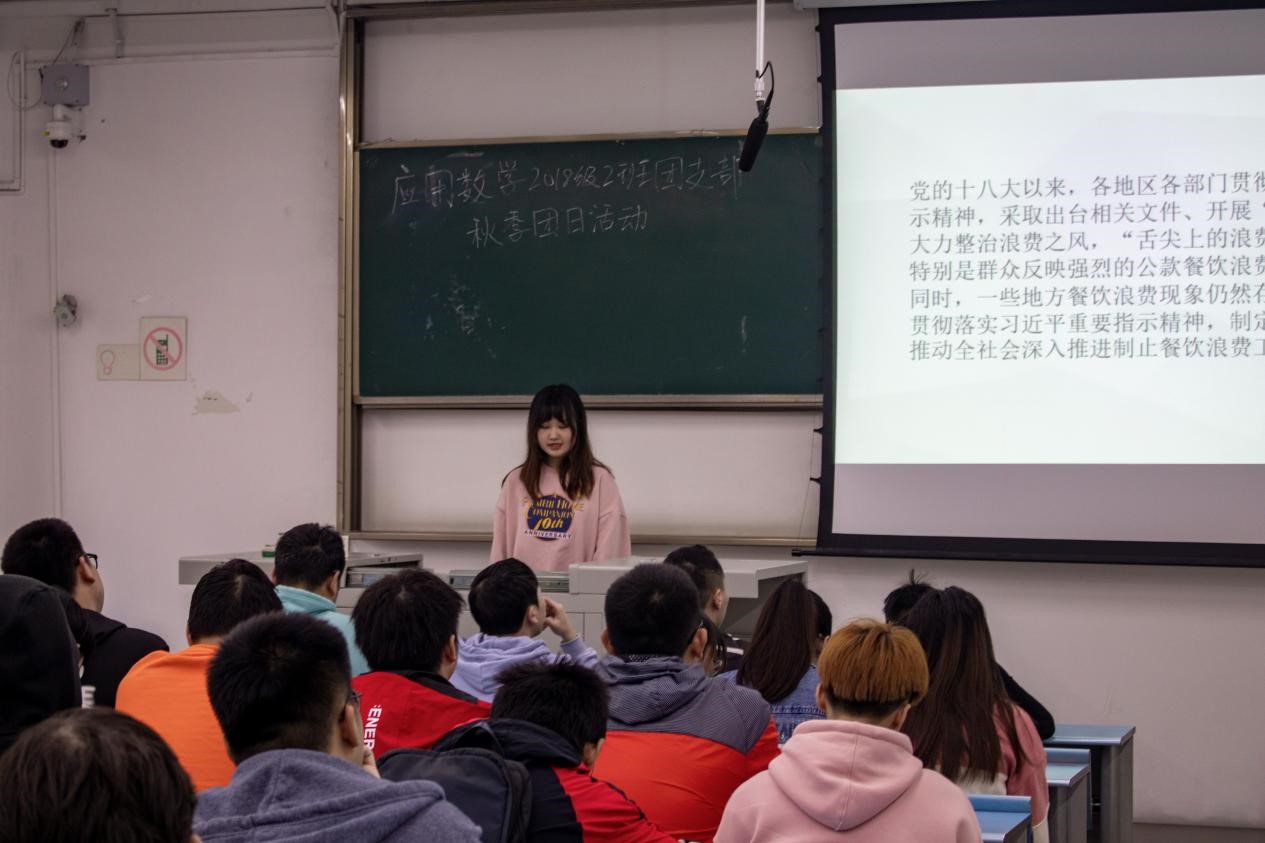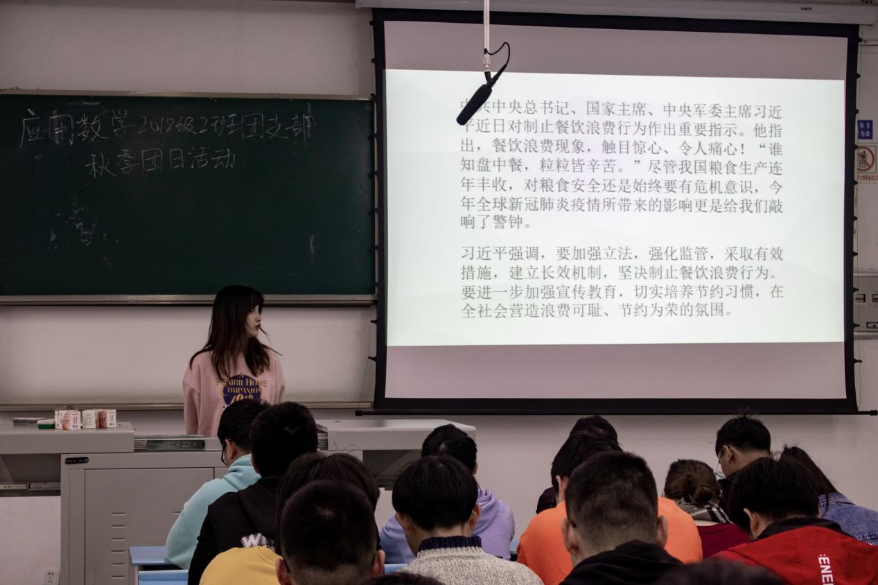 为弘扬中华民族勤俭节约的优良传统,进一步形成厉行节俭、拒绝浪费的良好习惯,vwin德赢ac米兰官网应用数学2018级2班团支部于2020年10月24日下午5:00于X2532开展了以“厉行节约,反对浪费”为主题的团日活动。参加此次活动的有数学二班团支部所有团员和vwin德赢ac米兰官网“1+100”团干部直接联系青年制度联系人林玉。