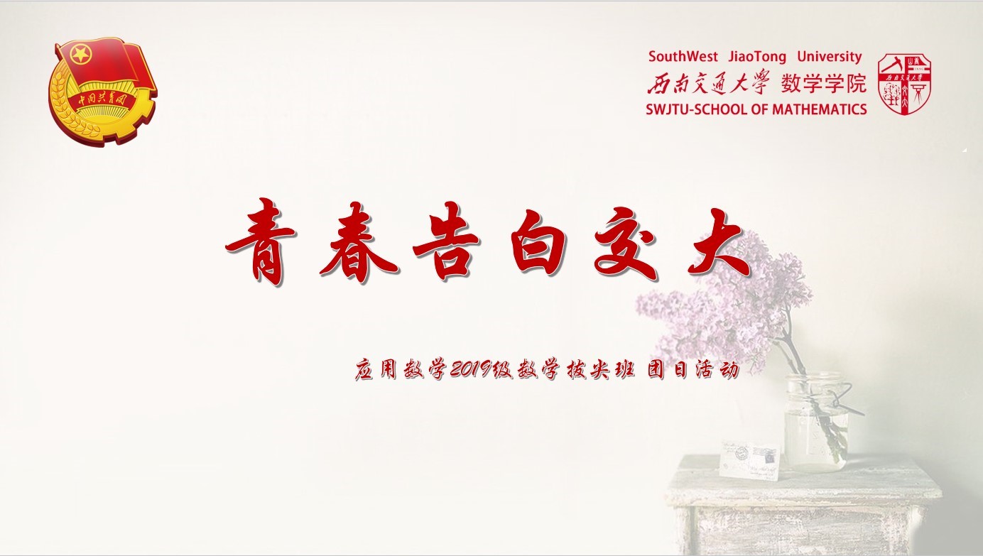 为热烈庆祝新中国成立71周年,贯彻落实“全团大抓基层”工作要求,加强对青年学生的思想政治引领,激发交大学子的爱国、荣校热情,增强交大青年的责任担当意识,号召交大学子为复兴交大学习成才,在深入推进学校“双一流”建设事业中贡献青春力量,应用数学2019级数学拔尖班团支部于10月27日下午在2105教室按照vwin德赢ac米兰官网团委的要求召开了“青春告白交大”主题团日活动。本次团日活动由团支书宫天浩主持,支部全体成员全员参与。