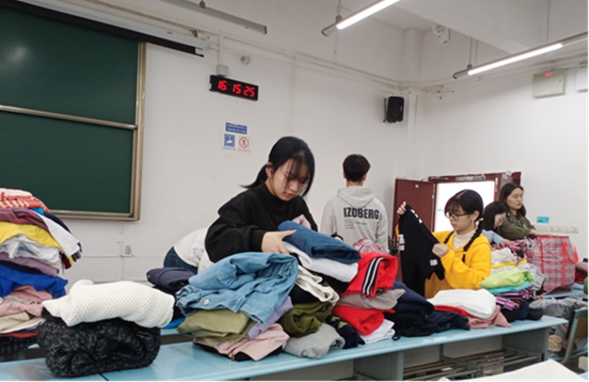 11月10日下午3时50分,志愿者们将衣物送至x2416整理、分类并进行包装。打开一包又一包的衣物,那都是捐衣者的爱心满怀热忱,志愿者们按照性别、薄厚程度、穿着季节和用途方面衣物进行分类打包。整理过程持续了将近七十分钟。