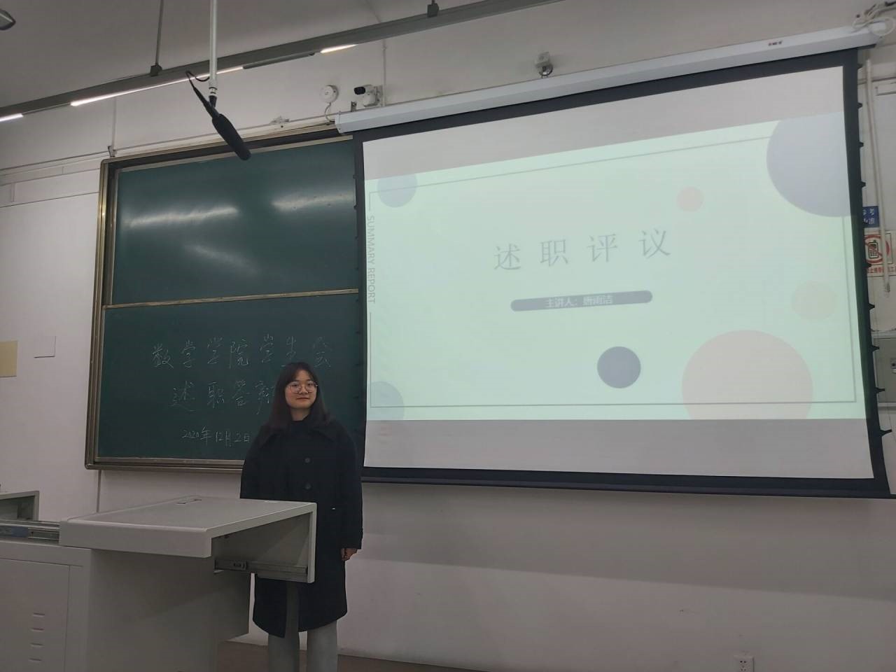 会议第一项是学生会的指导老师周睿发言,他强调了述职评议是学生会负责人对自己的以往工作的总结与经验的汲取,学生干部要以身作则、严于律己、不断提升自己,才能更好的服务同学、服务学院;同时还对过去学生会的工作表示肯定,激励学生会进行改革。