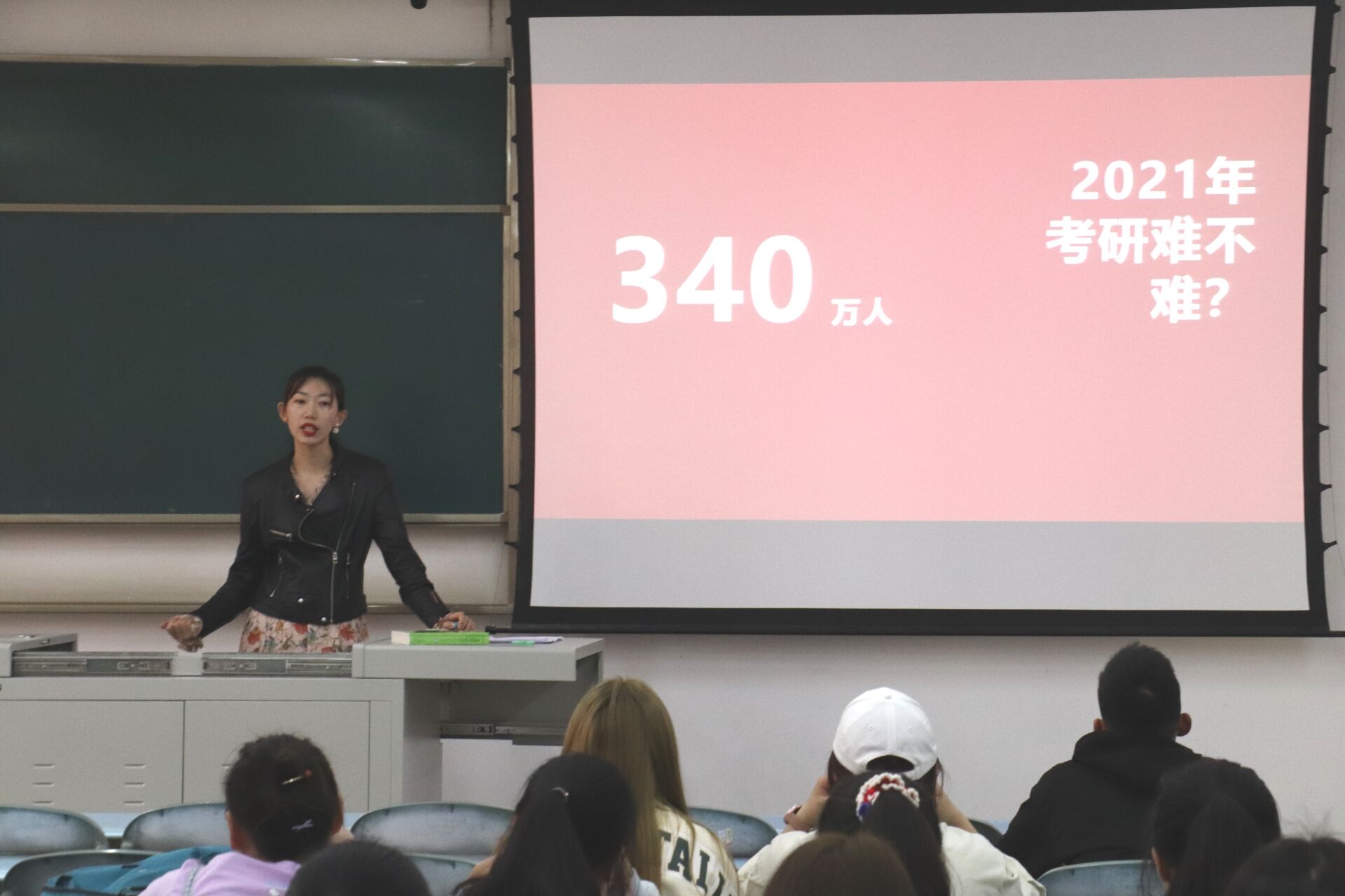 分享会伊始,周芝娜老师就研究生考试的相关问题向在场同学进行提问,并对同学们存在疑惑的问题进行一一解答。随后,周老师根据自身经历向大家阐述了报考研究生的重要性。分享会就目标、基础、选择与学习四方面进行讲解指导。