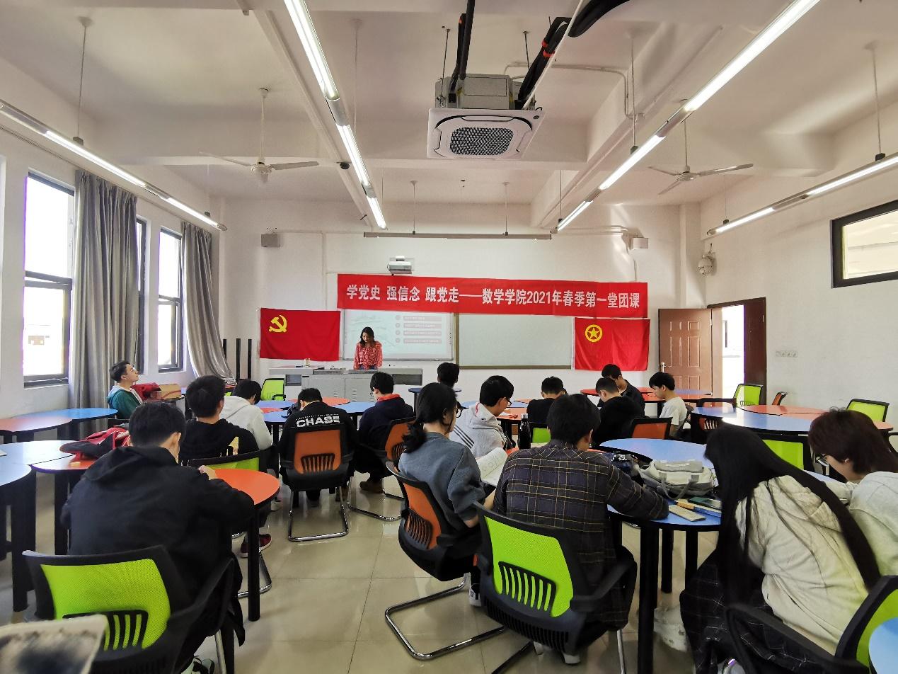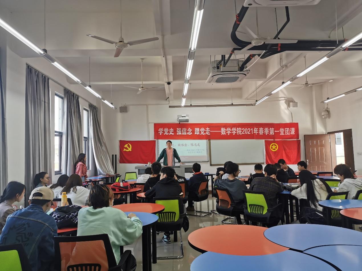 为加强团员青年学生的思想政治引领。vwin德赢ac米兰官网应用数学2019级2班团支部于4月29日09:50在X9503开展了“开学第一堂团课”。本次团课由张素子老师主持,支部25名团员按时参加。