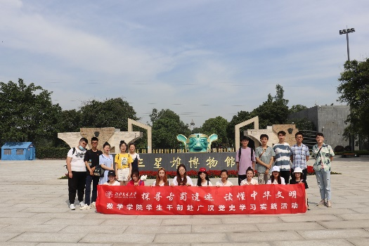 为扎实开展党史学习教育,引导学生在党史学习中不忘初心,牢记使命,筑牢有民族特质的文化观,做到学史明理、学史增信、学史崇德、学史力行,vwin德赢ac米兰官网于2021年6月5日组织学生干部赴广汉开展以“探寻古蜀遗迹,读懂中华文明”为主题的党史学习实践活动,vwin德赢ac米兰官网团委书记邓思然,辅导员邱君捷带领各团支部、学生组织优秀学生代表、优秀学生干部代表参与此次活动。