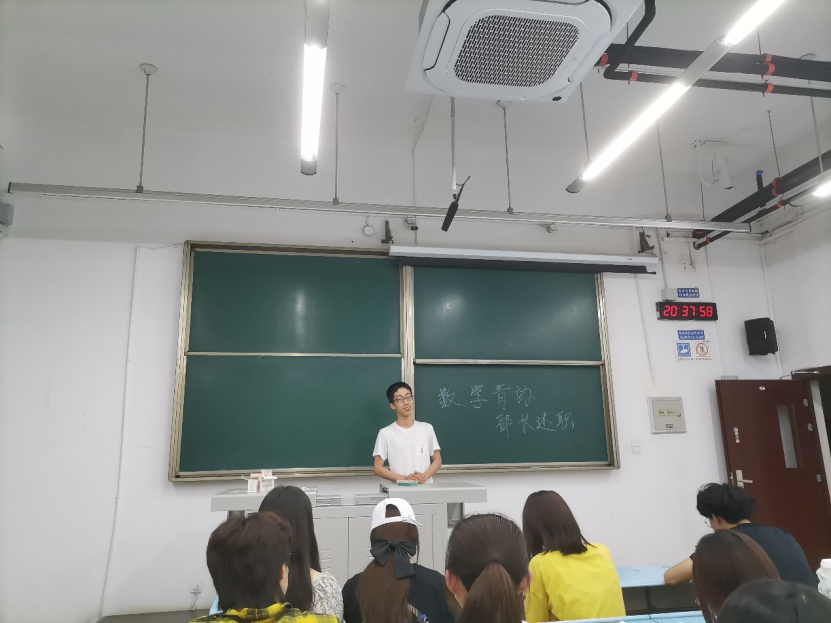 大会于当晚7时30分准时开始。第一项内容是部长述职,各位部长按照活动部,办公部,宣传部的顺序依次上台,分别对自己负责的任务以及活动进行介绍,并对自己一年以来的工作之中的不足之处进行反思,希望接班人们引以为戒;还有对新任部长的期望,例如活动策划创新、突发情况处理等方面;亦抒发了一年以来,自己对青协的深厚感情,引得众人动容。在此之余,各位竞选者也积极地记录着部长们的工作经验,争取来年做到“青出于蓝而胜于蓝”,努力做到让数学青协越办越好。