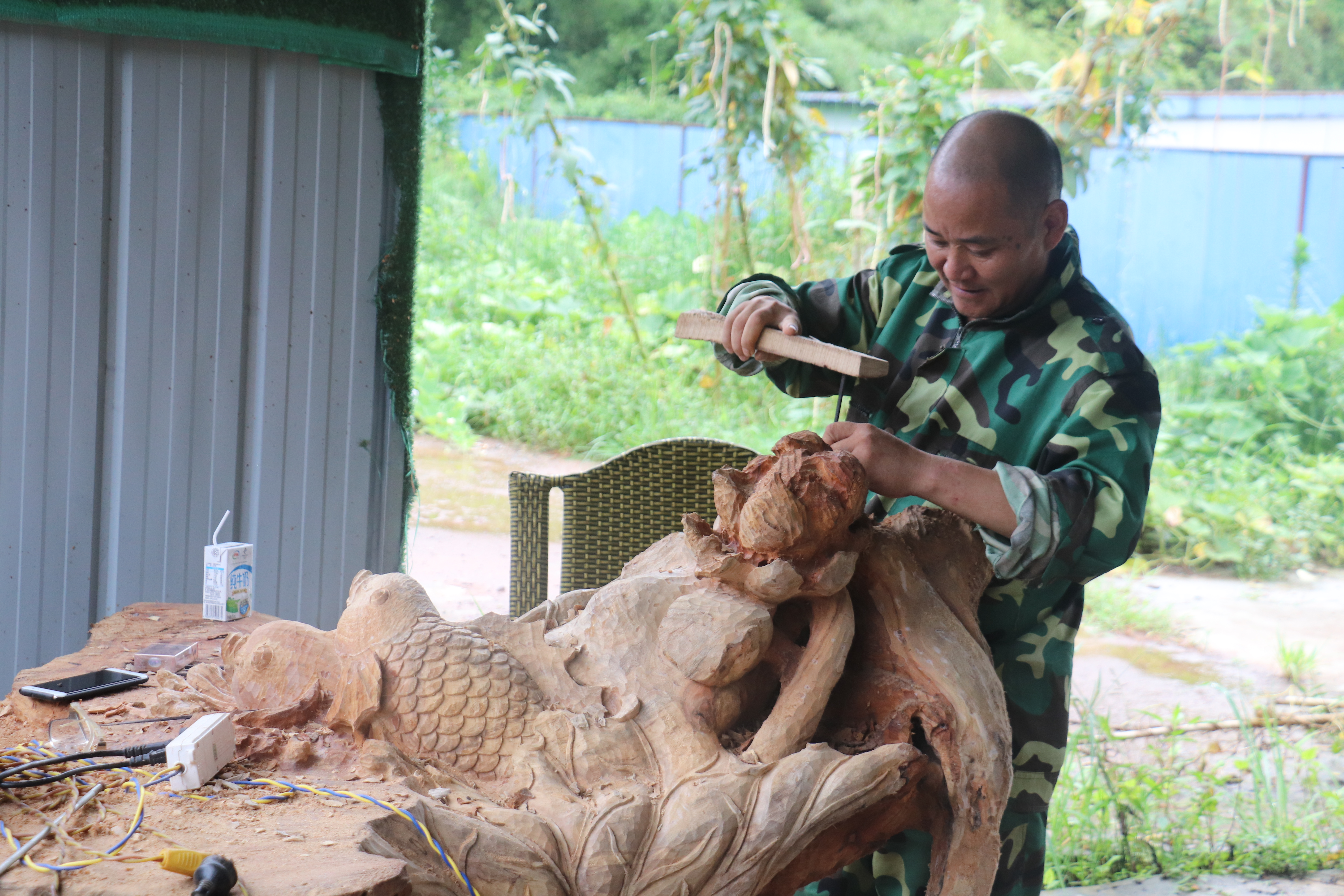 团队还前往叙州区古柏镇宜宾奇异雕塑有限公司进行参观调研,并现场观摩根雕制作的全过程。据了解,为我们展示根雕制作技艺的师傅从10岁起便开始接触根雕艺术创作,距今已有30余年。师傅热情地向团队成员展示了根雕的雕刻加工过程,依次介绍了选材、创作、雕刻等步骤。交流过程中,提及工匠精神时,师傅说道:“工匠精神对于我而言,就是一辈子只做一件事,干一行,爱一行,精一行。”