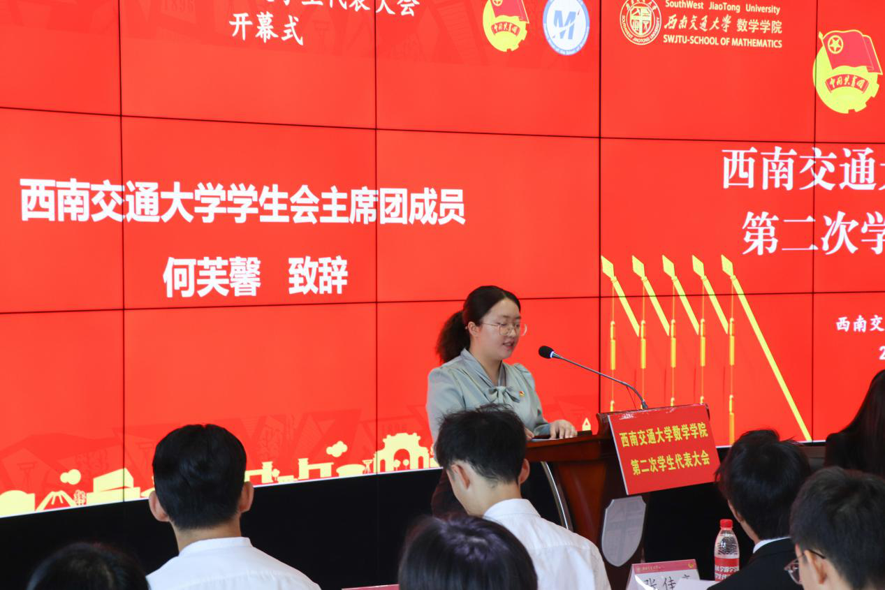 为深入学习贯彻团中央和全国学联关于学生会深化改革的各项要求,进一步坚持巩固和完善学生代表大会制度,按期规范召开学生代表大会,将学代会服务同学成长、回应同学诉求、维护同学权益、选拔学生骨干的核心职能落到实处。在学院党委的坚强领导下、在学院团委和校学生会的悉心指导下,按照《中共vwin德赢AC米兰合作委员会关于推进学生会(研究生会)深化改革的实施方案》要求,9月19日上午,vwin德赢ac米兰官网第二次学生代表大会在犀浦校区四号教学楼X4243会议室隆重召开。本次大会应到学生代表60人,实到59人。vwin德赢AC米兰合作学生会主席团成员何芙馨、vwin德赢ac米兰官网团委书记邓思然、团委副书记张素子、vwin德赢ac米兰官网辅导员邱君捷、周睿、谢健祥以及各兄弟学院学生会主席团成员和vwin德赢ac米兰官网各团学组织主席团成员、各团支部书记出席大会开幕式。开幕式由vwin德赢ac米兰官网学生会主席团成员周义杰主持。