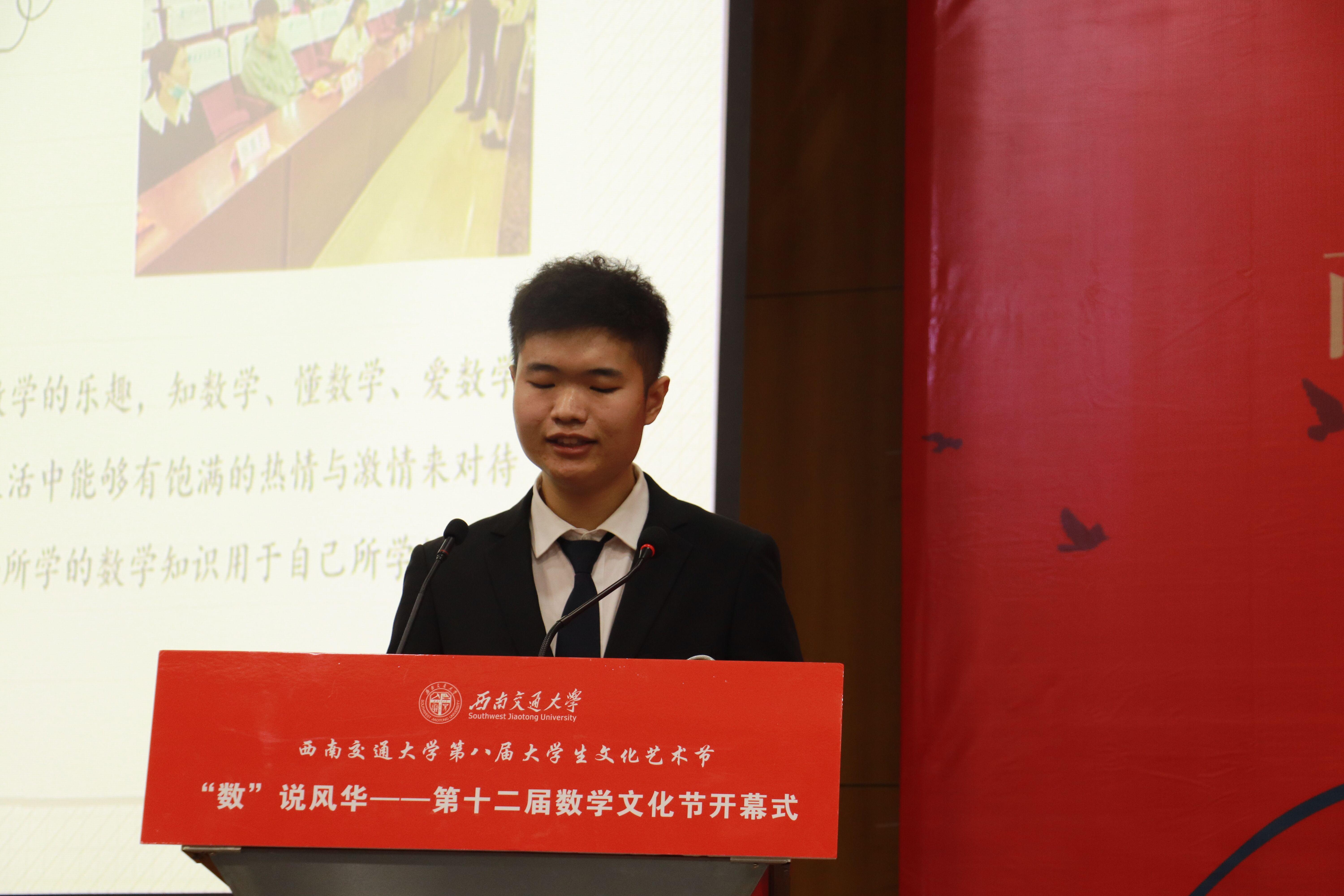 接下来,由vwin德赢ac米兰官网学生会主席团成员赵汉林为大家进行数学文化节往期成果展示及本届活动的介绍,展示数学文化节的前世今生。他指出,数学文化节是vwin德赢ac米兰官网举办规模最大、时间跨度最长、影响范围最广的校级精品文化活动,是vwin德赢ac米兰官网面向全校师生传播数学文化的窗口。本次活动旨在在全校范围内形成良好的数学学科竞赛氛围,并为全校师生带来一堂生动的思政课。